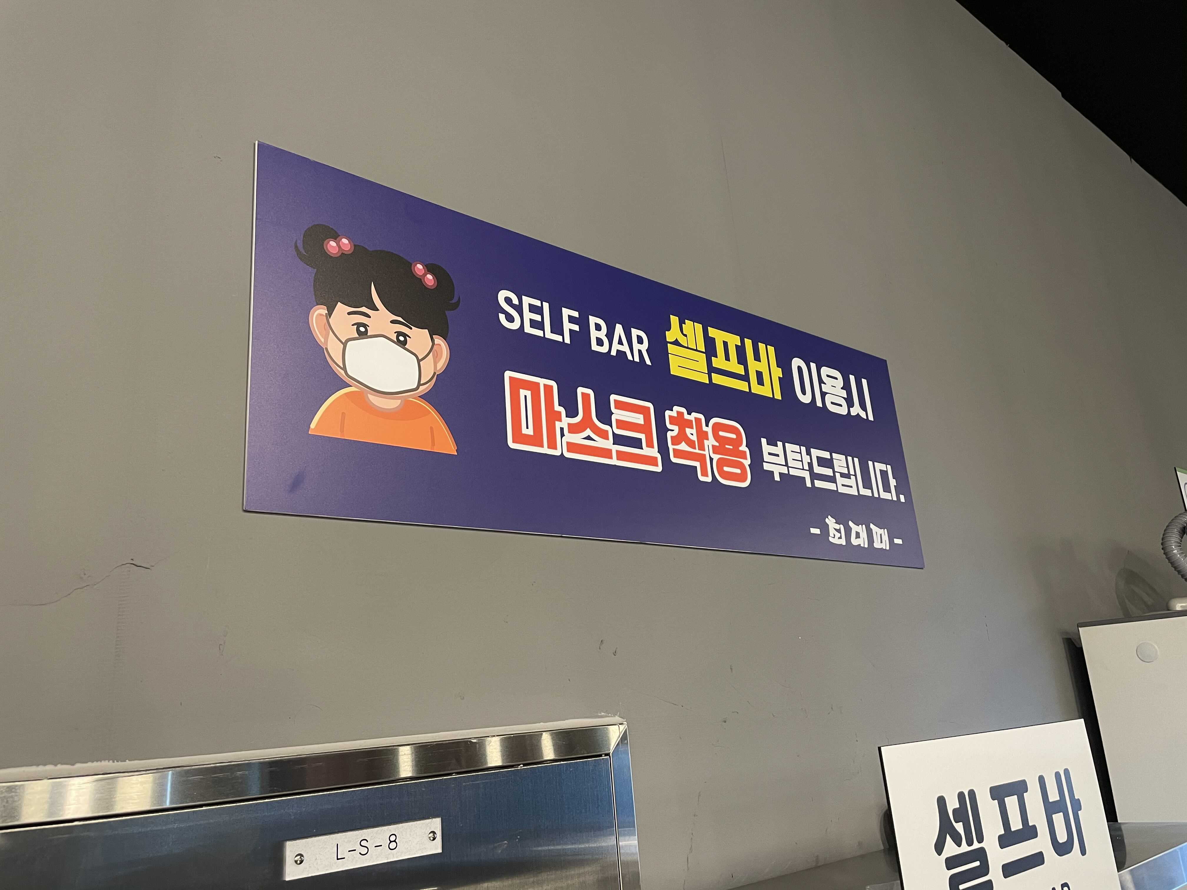 셀프바를 이용할 때는 반드시 마스크를 착용하고 이용해야 한다.