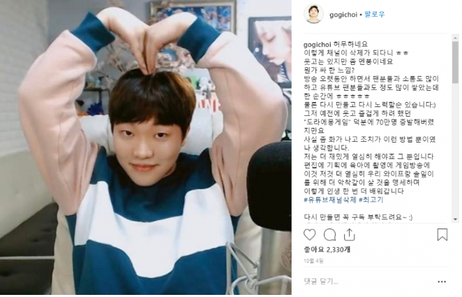 최고기 70만구독자 유튜브 계정 폭파사건