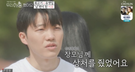 이어서 "옛날 사람들은 남자가 집을 해오면 여자는 혼수 그런 게 있지 않나. 결혼 했을 때 그런 부분이 많이 안맞았다. 그것 때문에 아버지가 상견례자리에서 강한 말투로 말했다. 평소 아버지의 성격이 불같고 공격적인 스타일이라 장모님에게 상처를 줬던 것 같다"라고 말하면서 우는 모습을 보였다.