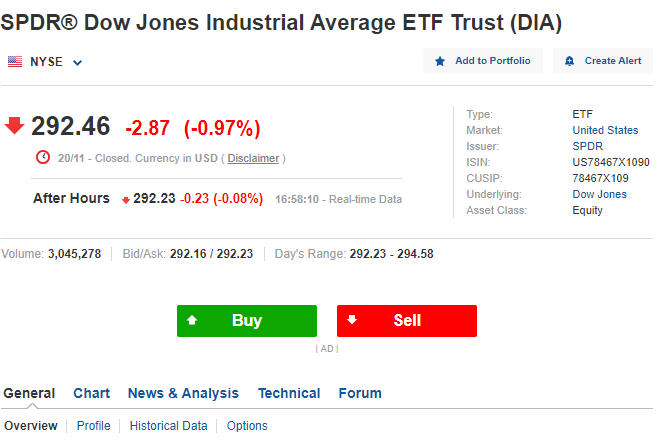 미국 경제상황을 대변하는 다우존스 지수를 추종하는 ETF이다.