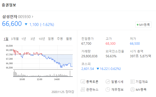 최근에 주식시장 열기가 과열되고 코스피가 2,600선을 돌파하면서 회사원들은 물론이고 주식의 '주'자도 몰랐던 사람들까지 주식시장으로 몰리면서 삼성전자 주식이 연일 고가행진을 이어가고 있다.