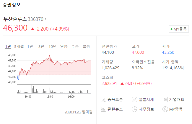 갑자기 두산솔루스가 많은 이들 사이에서 주목을 받고 있다.