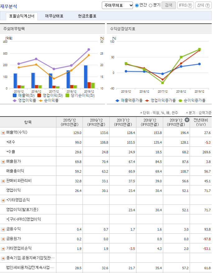 영업이익 뿐 아니라 순이익도 꾸준히 증가하는 기업으로 앞으로의 미래가 기대되는 기업이라고 할 수 있다.