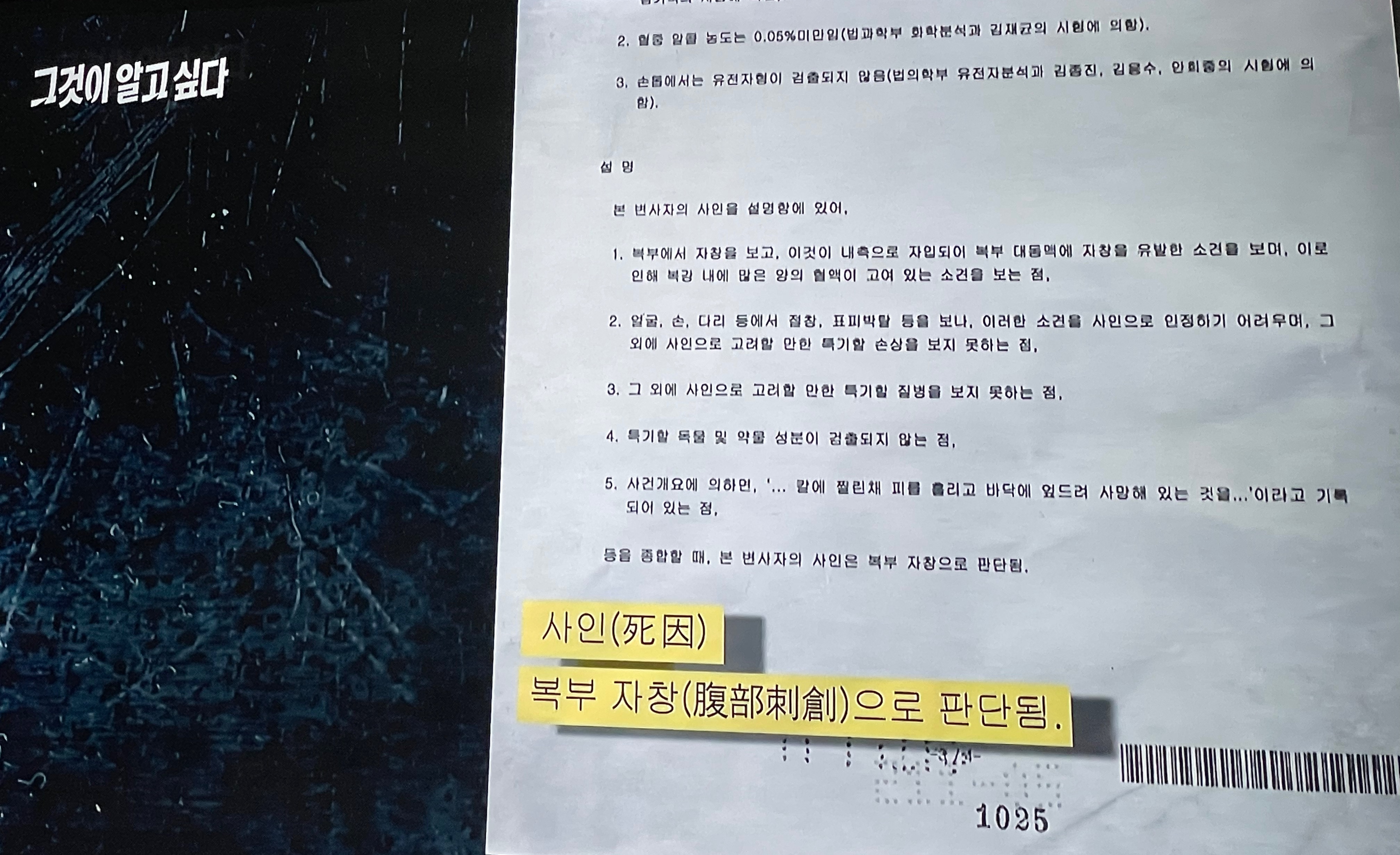 사건 흉기와 비슷한 재질의 칼로 실험을 했는데, 결과는 지문이 전혀 나오지 않았던 것이다.