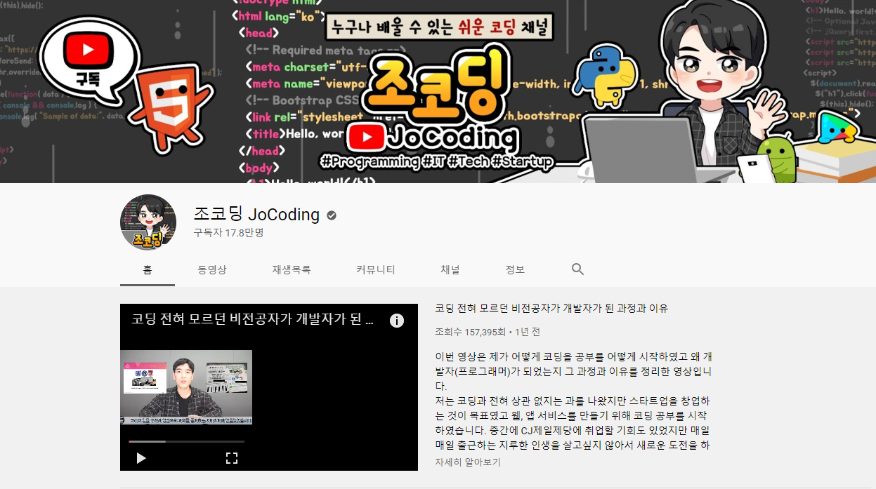 관상테스트를 만든 사람은 유튜버를 대상으로 '코딩'강의를 아주 쉽게 알려주는 조코딩이라는 유튜버이다.