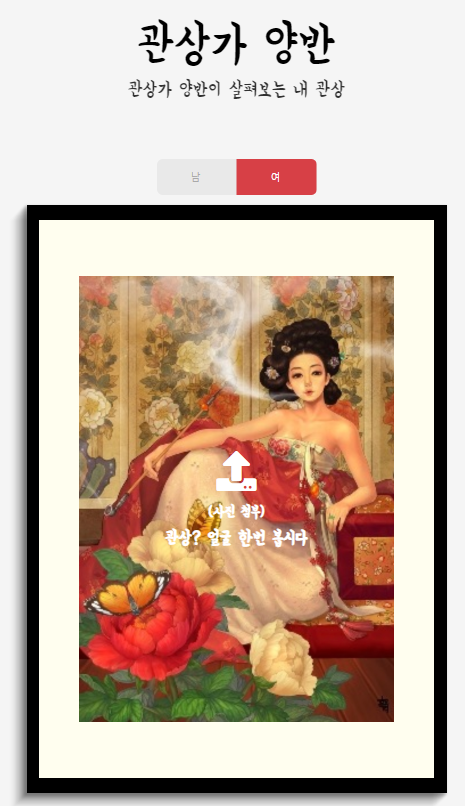 관상을 그냥 볼 수는 없다. 왜냐면 인공지능이 내 얼굴을 인식해야하고, 보아야 하기 때문에 준비물이 필요한데, 매우 간단하다. 준비물은 나의 얼굴이 잘 나온 사진이 필요하고, 다양한 결론을 보고싶다면 사진을 한 장 준비하기보다는 여러장 준비하는 편이 좋다.