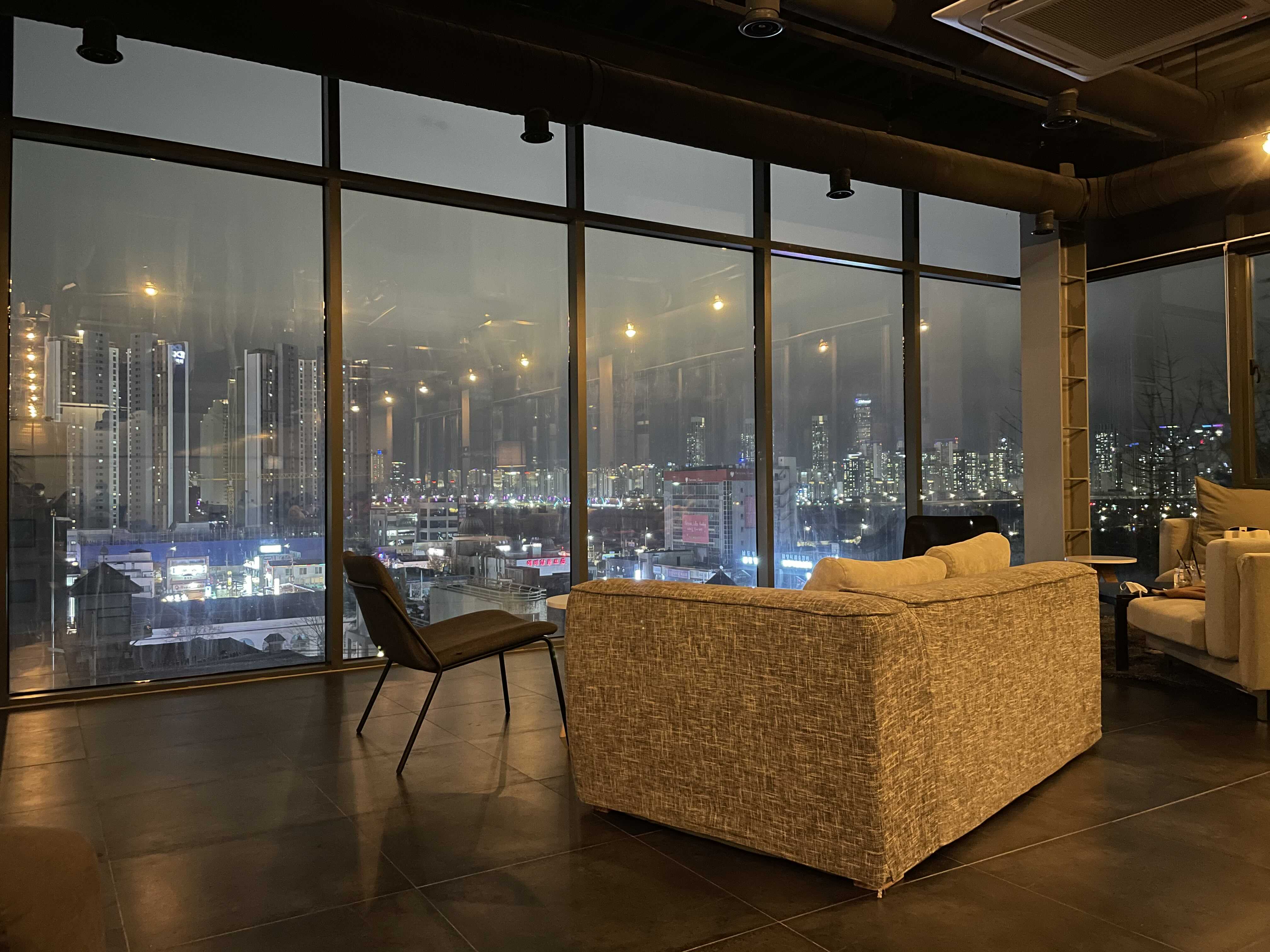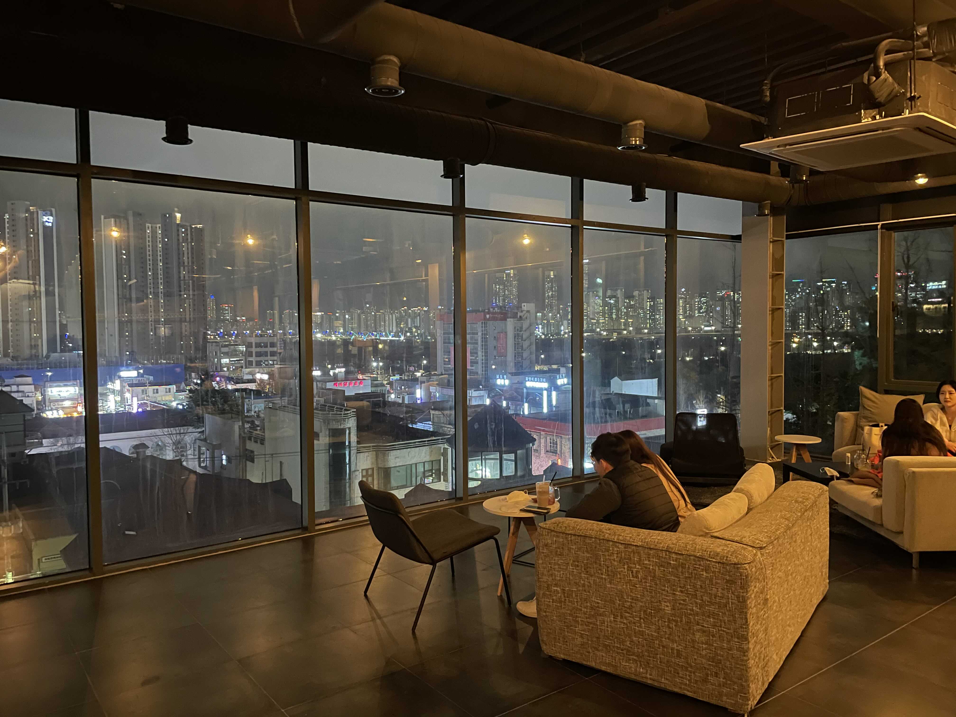 2층은 통유리로 되어있어서 구송도의 야경부터 송도신도시의 고층빌딩까지 모두 볼 수 있다.