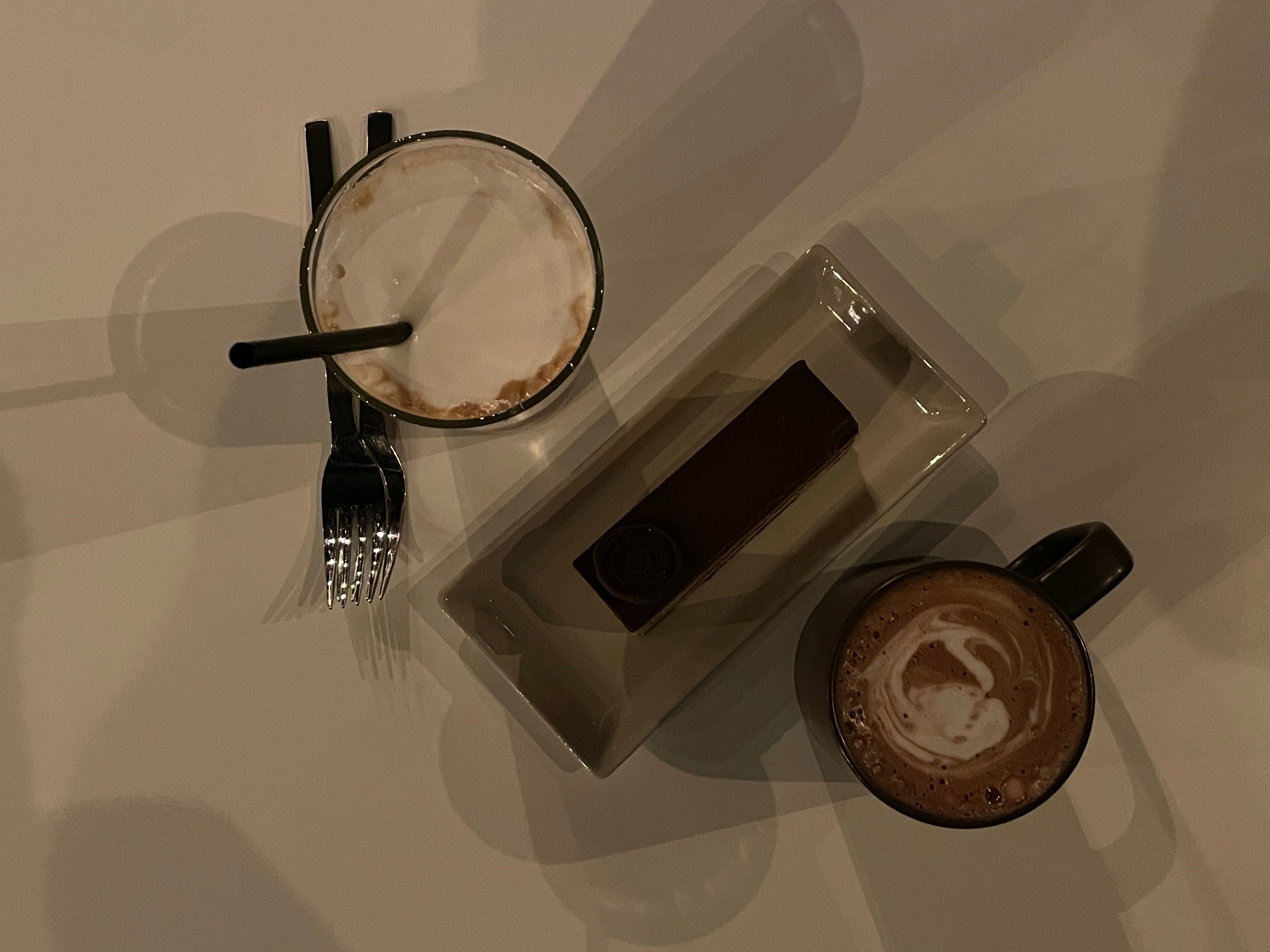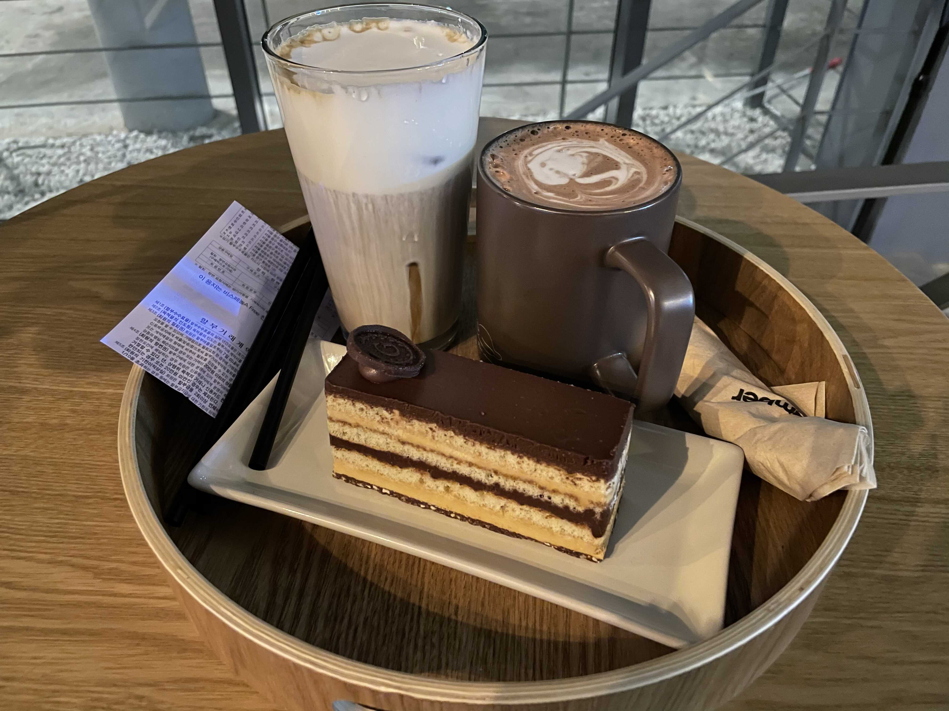 우리가 주문한 메뉴는 '아인슈페너인 SS와 핫초코를 주문했고, 오페라케이크였다.