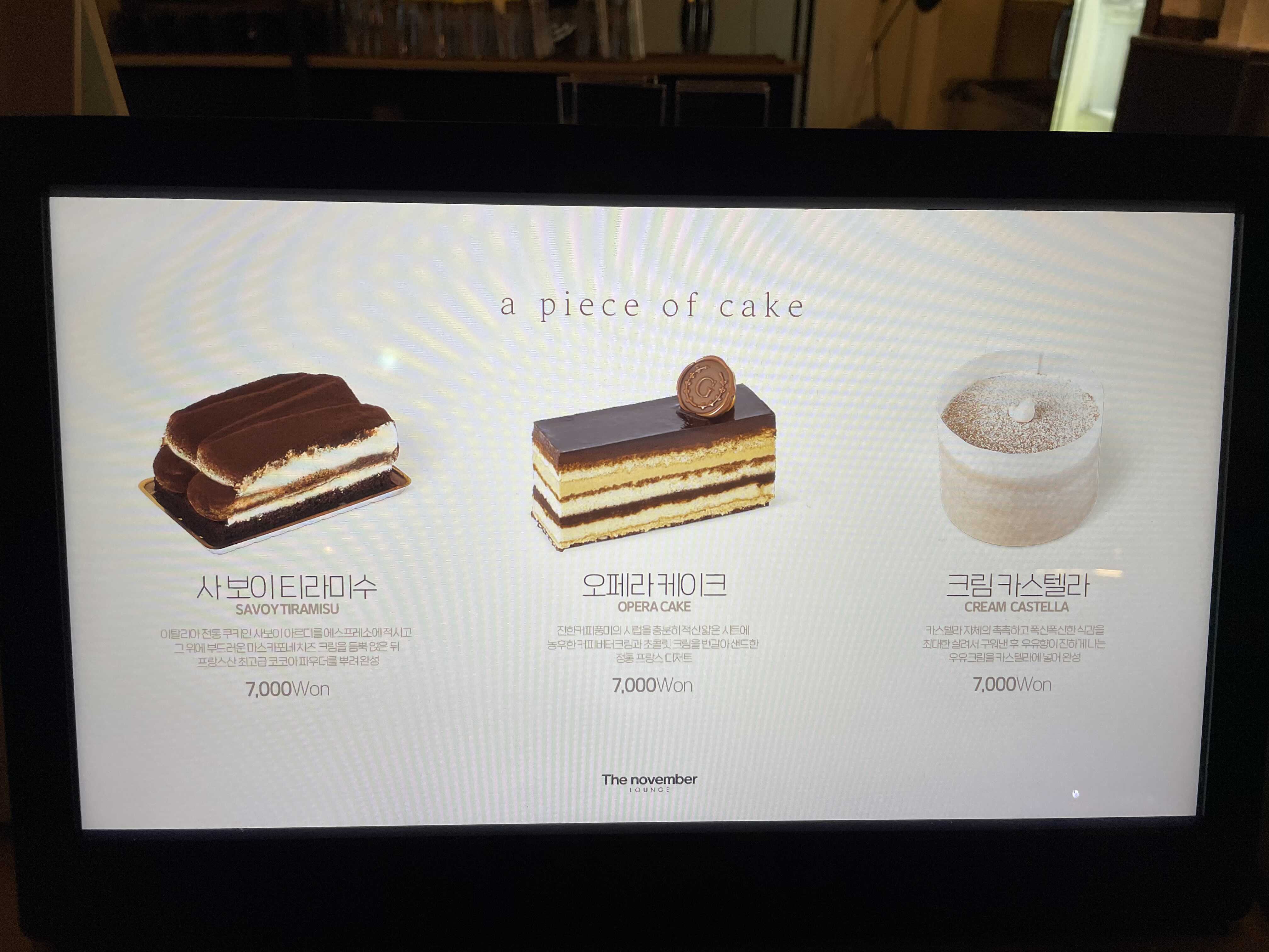 티라미수, 케이크, 카스테라 딱 세 종류만 있어서 선택하는데 크게 어려움은 없었다.