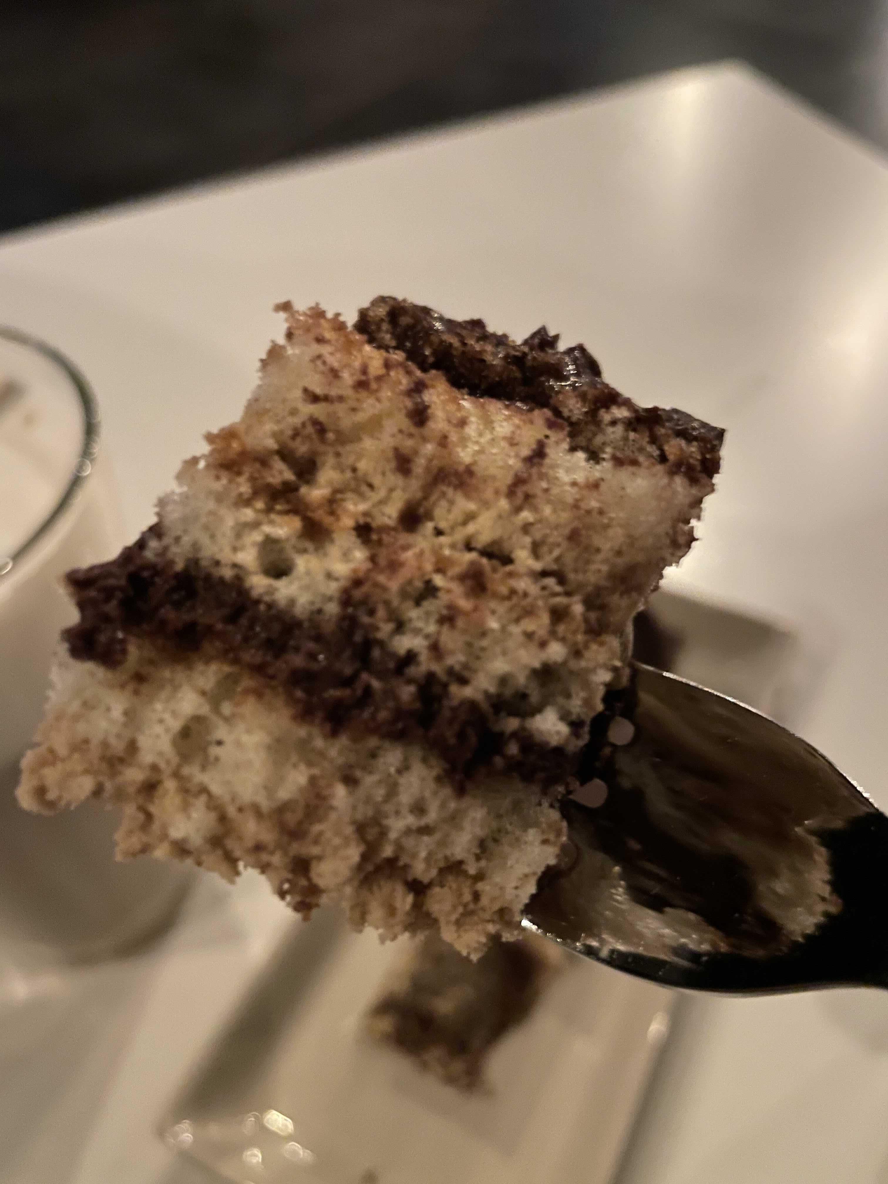 케잌을 자르면 아래와 같은 모양이 나오고, 진~짜 달달하다. 꾸덕한 느낌의 케이크라기보다는 폭신폭신한 느낌의 쉬폰케이크인데, 층층이 설탕이 쌓여있는 케이크라고 생각하면 된다.