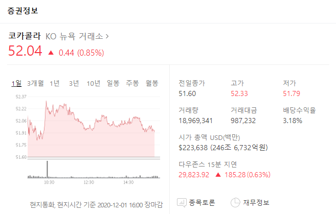 코카콜라는 꾸준하며 지속적이고 안정적인 소득을 줄 수 있는 기업으로 아마 많은 이들이 손꼽을 것이다.