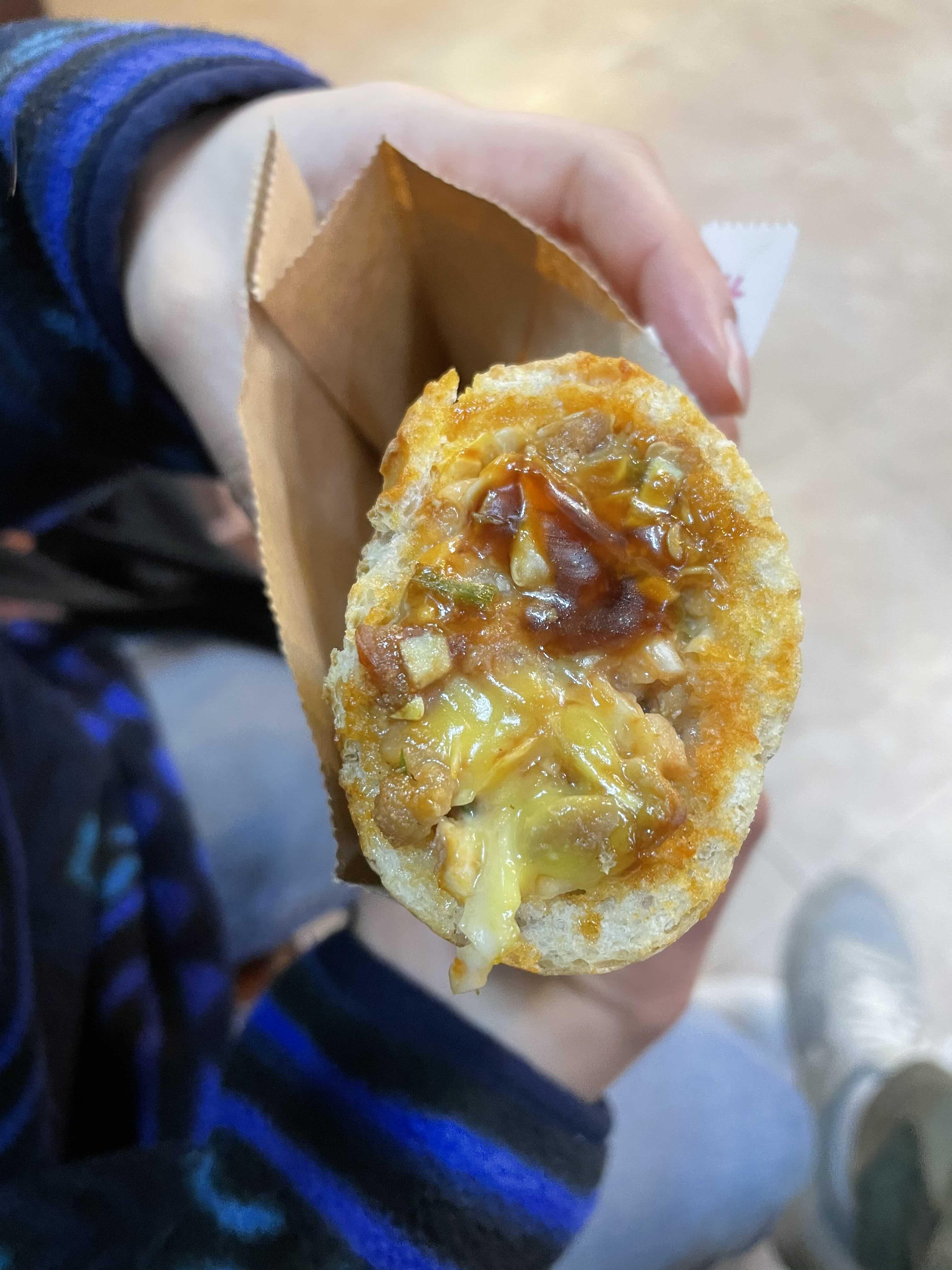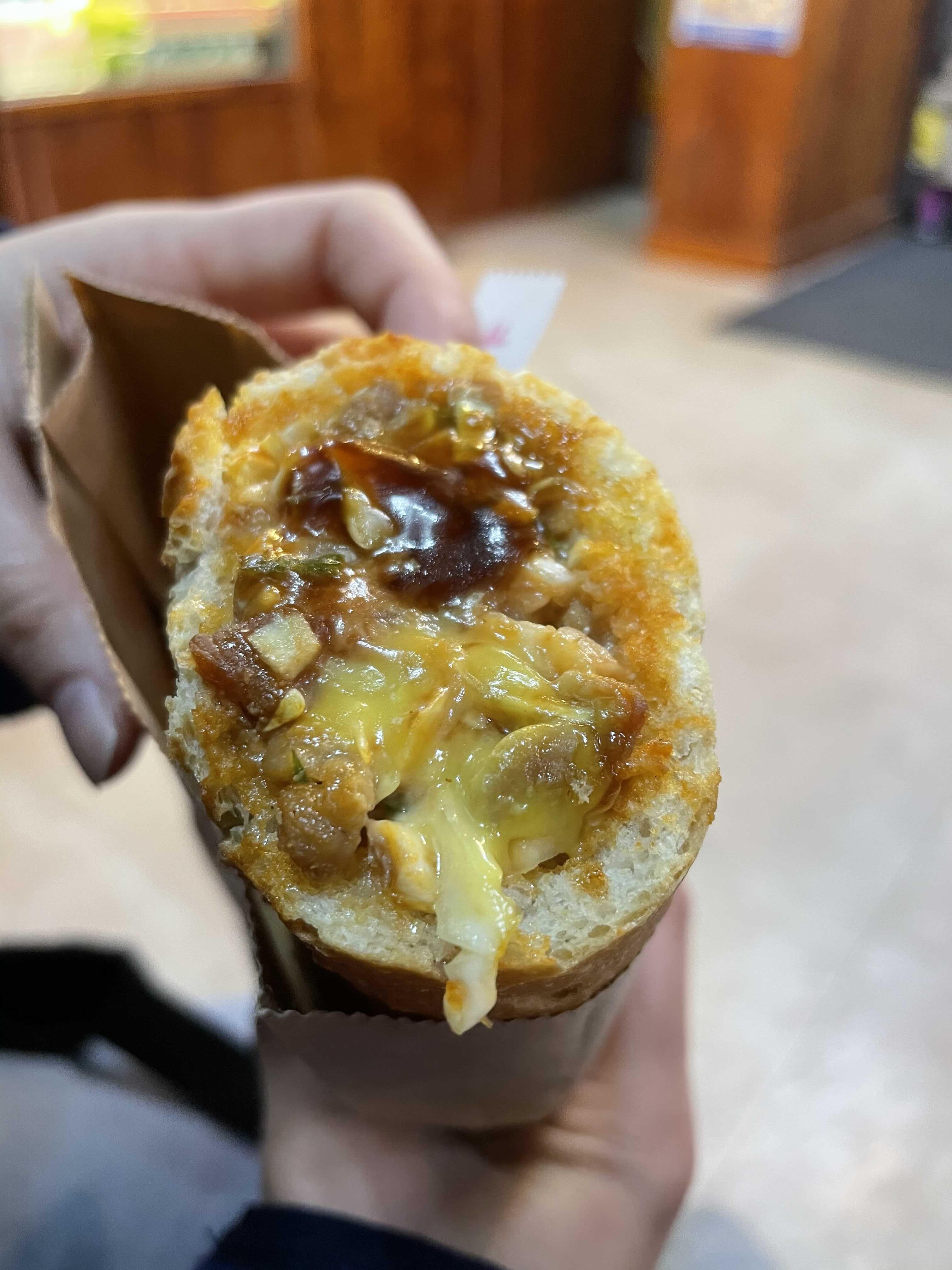 위의 사진을 보면 진짜 바게트를 잘라서 그 안에 만두소(?)처럼 내용물을 넣은게 보일 것이다.