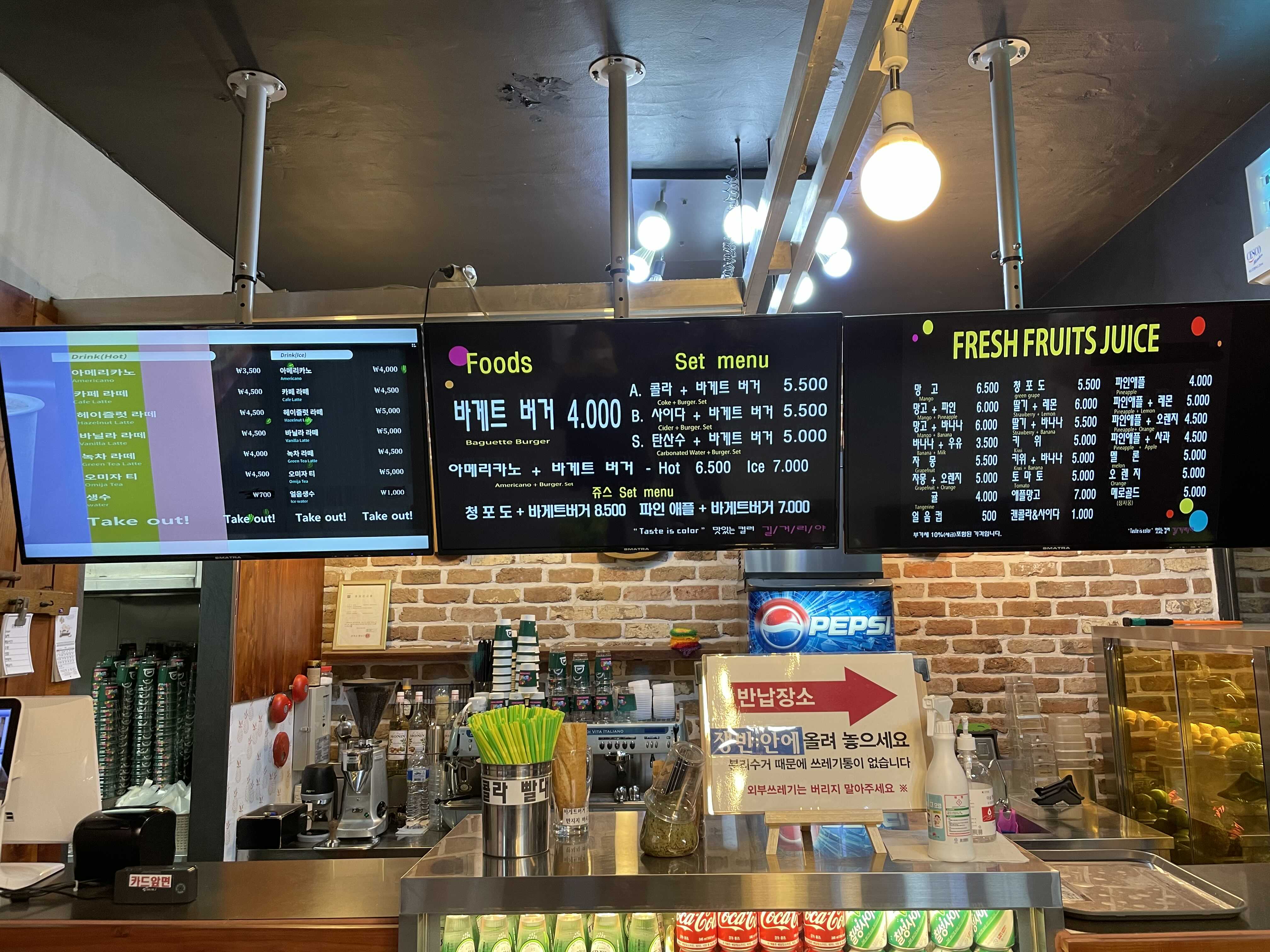 바게트버거 말고도 생과일주스도 판매하니 생과일주스를 마시고 싶은 사람에게도 추천한다.
