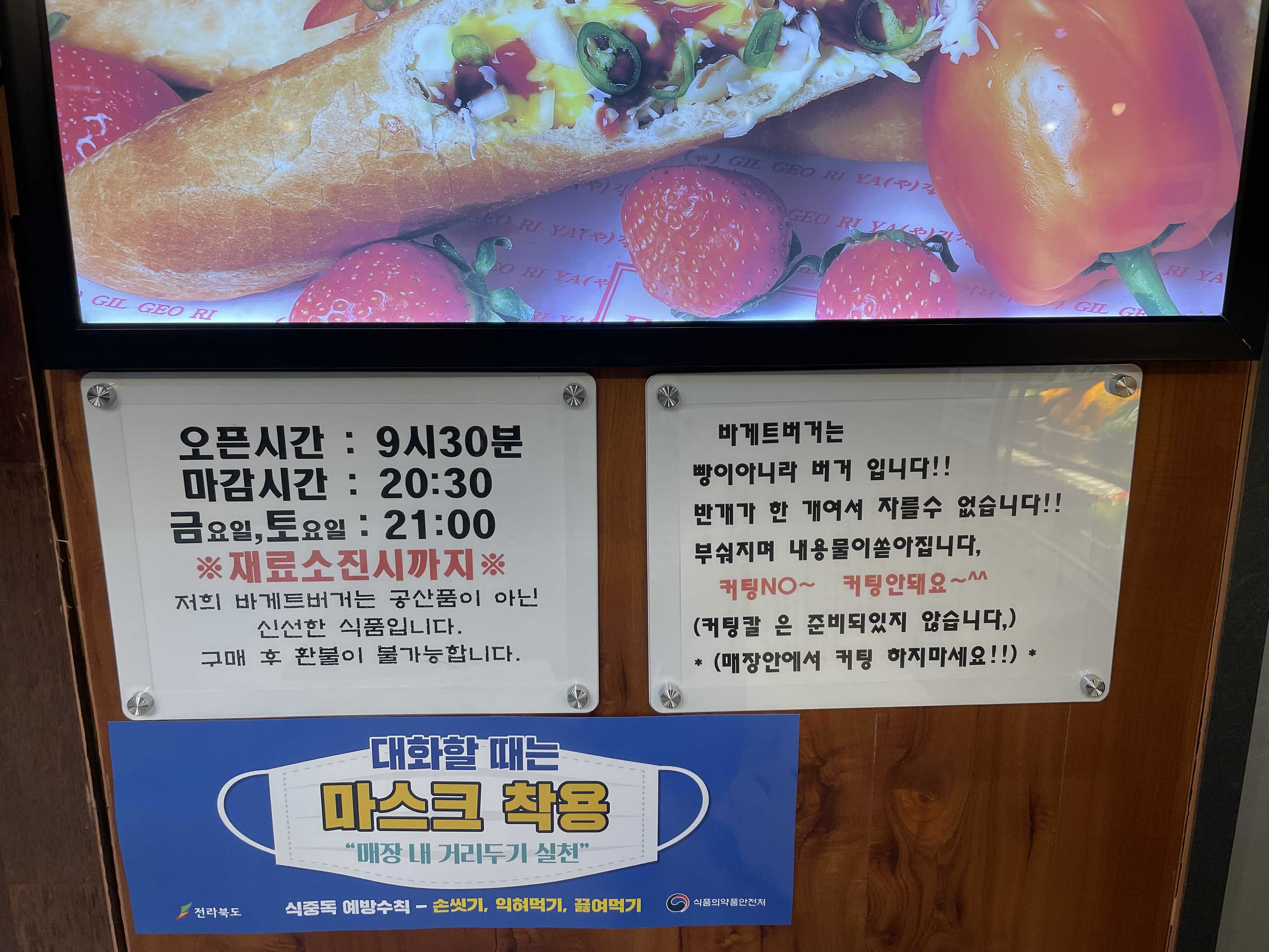 아니 무슨 바게트버거 먹는데 주의사항까지 알아야하나 싶지만 의외로 모르고 주인사장님께 요청하는 경우가 많다고 한다.