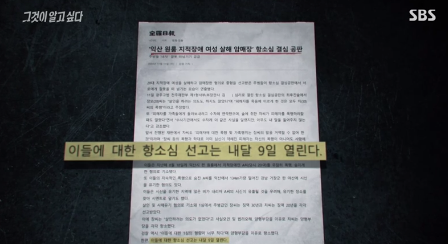 오늘 SBS 그것이 알고싶다에 방영된 익산 베란다 살인사건에 대해 아는가?