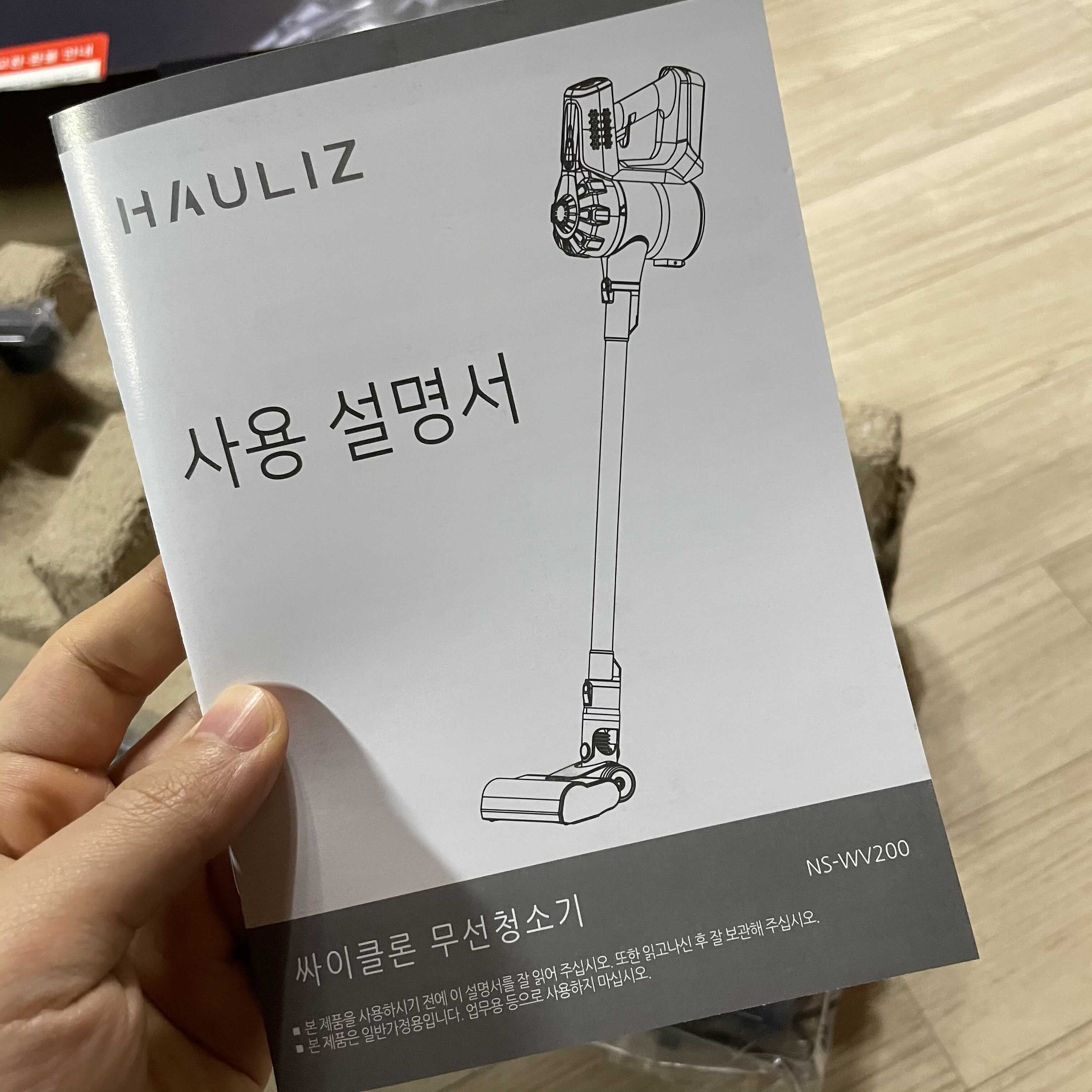 하우리즈 블랙나인의 '싸이클론'무선 청소기 설명서이다. 싸이클론이라는 말이 어울리는 강한 흡입력을 자랑한다.