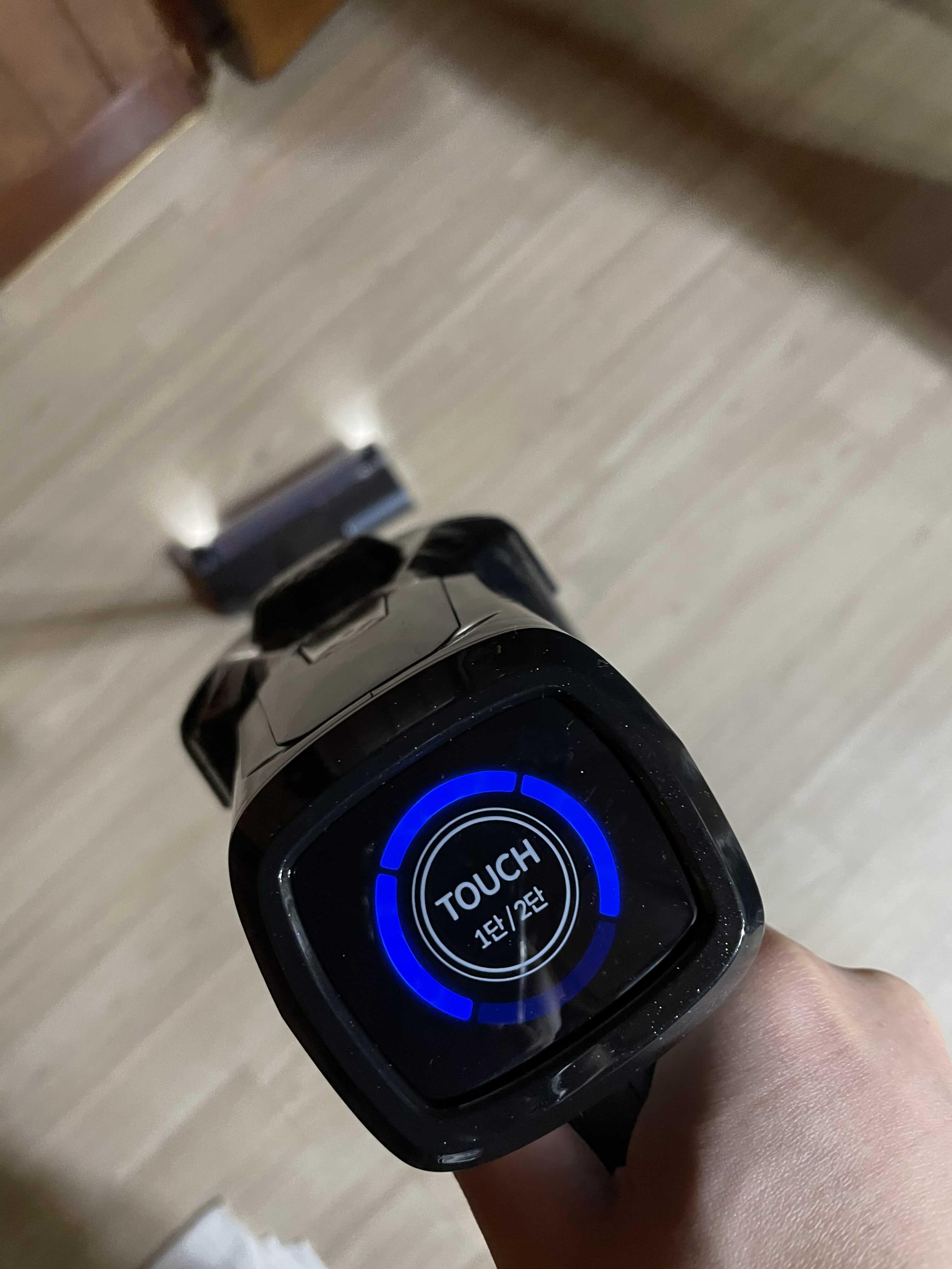 트리거 방식의 '구동'버튼을 누르면 그 이후에는 파란색 불이 들어오고, 2단을 누르면 빨간색으로 변하며 흡입력이 더 강해진채로 사용가능하다.