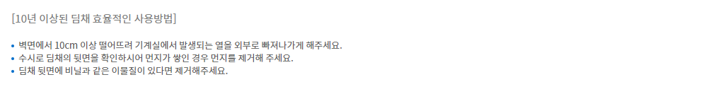 - 수시로 딤채의 뒷면을 확인해서 먼지가 쌓인 경우 먼지제거를 해야한다.