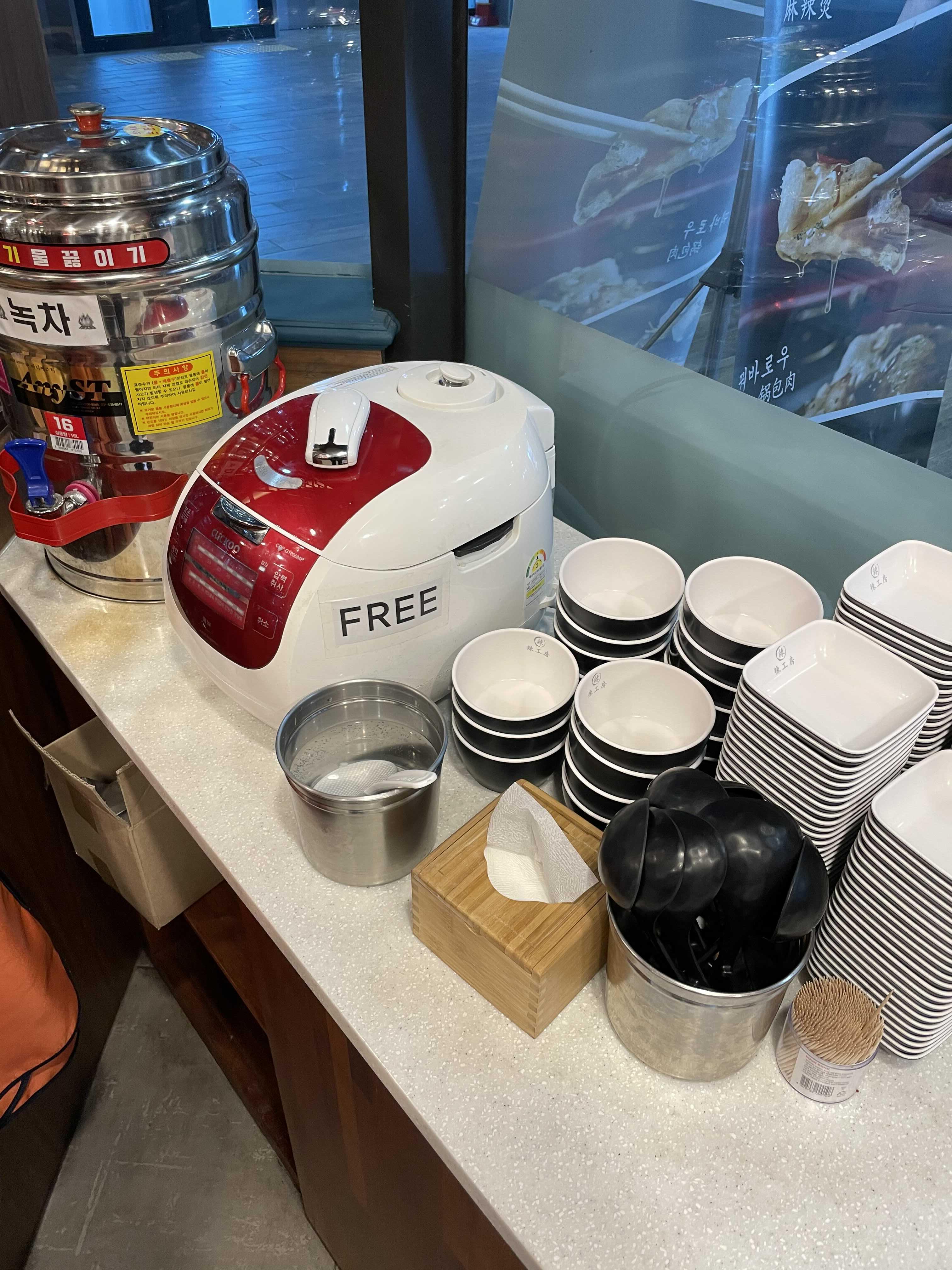 그리고 한국인이라면 반드시 있어야하는 '밥 무한제공'코너, 하지만 중국에서는 사실 마라탕 국물은 마시거나 밥을 말아서 먹지는 않는다는 점.