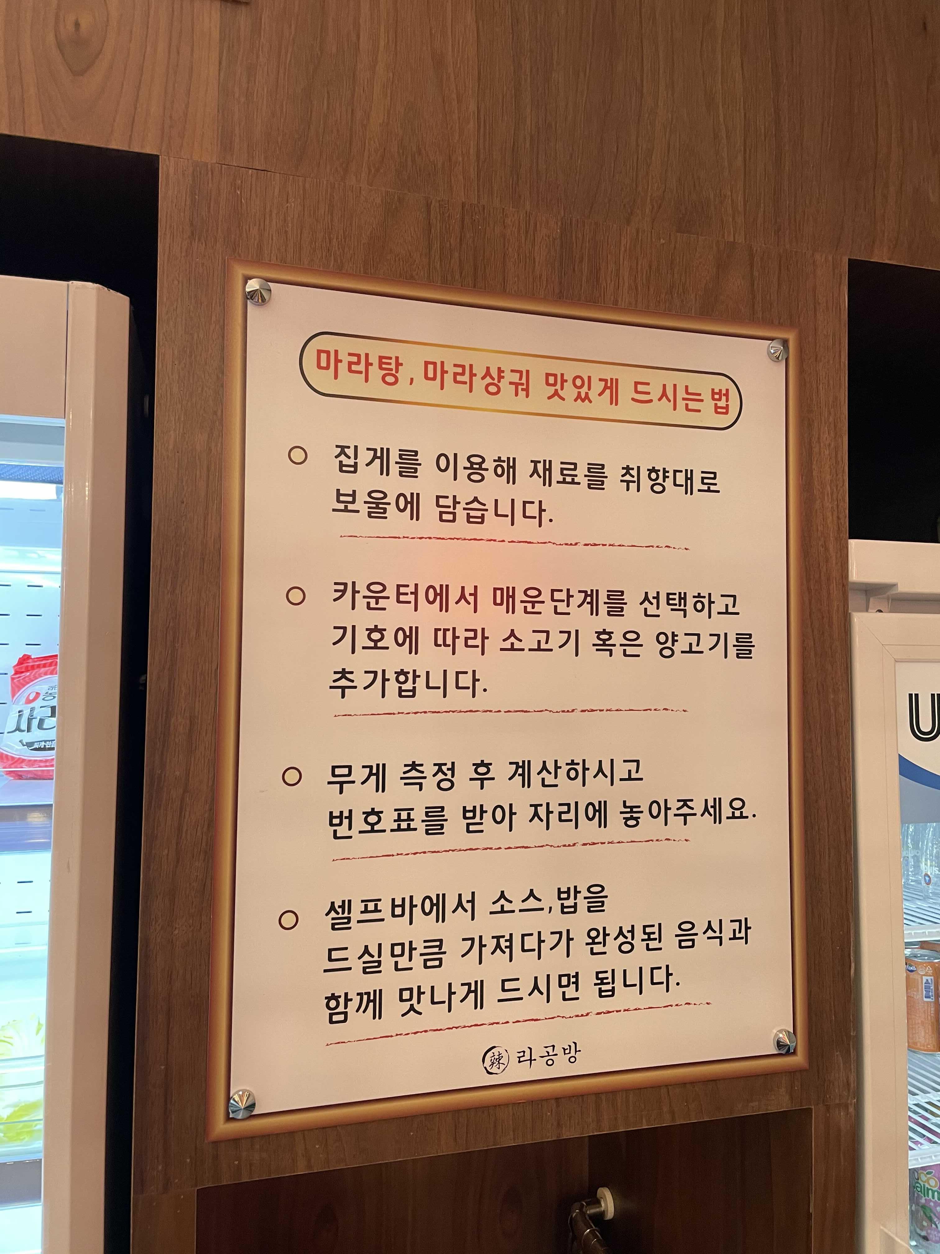 아래의 사진을 보면 라공방에서 마라탕과 마라샹궈를 맛있게 먹는 방법이 자세히 나와있다.