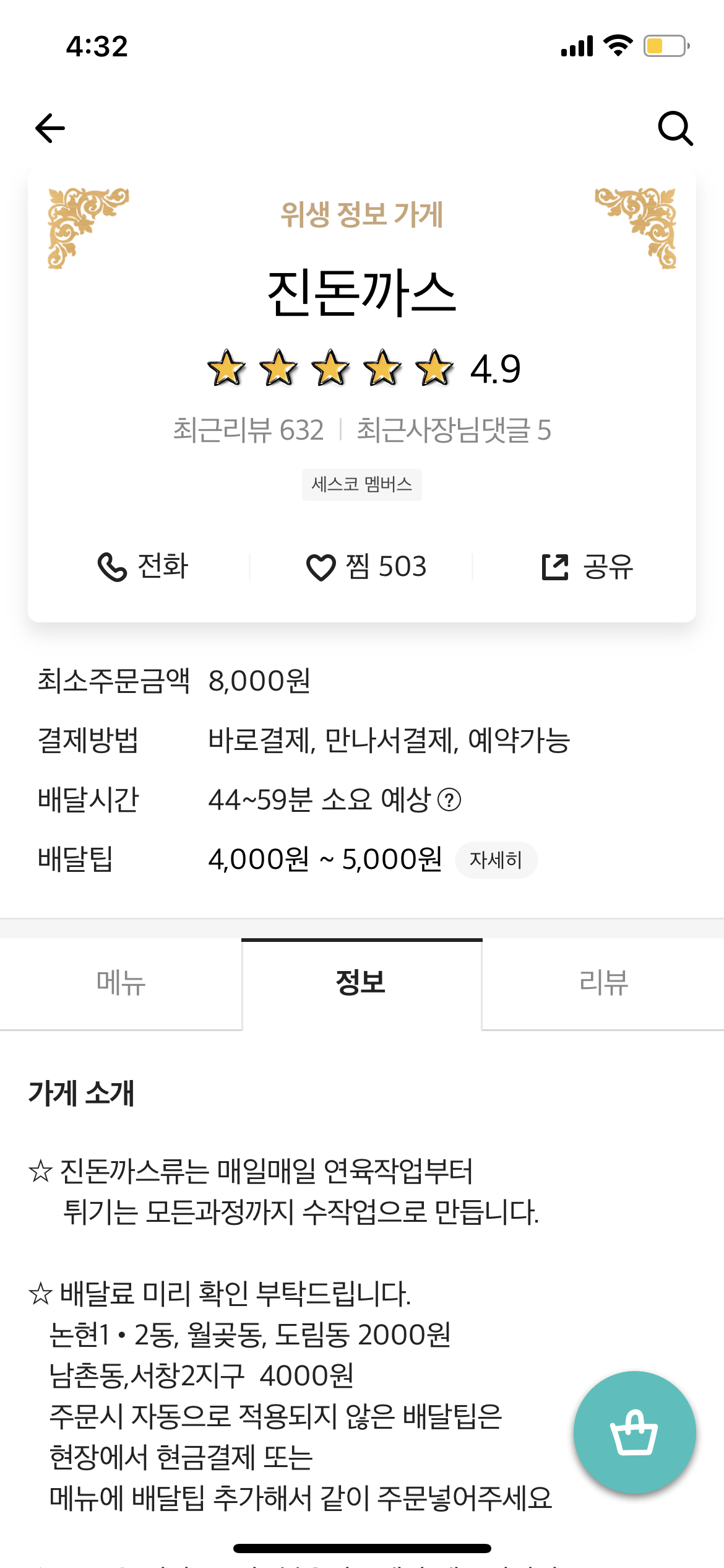 배달음식점인데 거의 5점만점에 가까운데다가 리뷰를 봐도..이렇게 싸게 퍼주고 사장님 뭐 남냐고 물어보는 고객들이 꽤 있다. (나도 공감함)