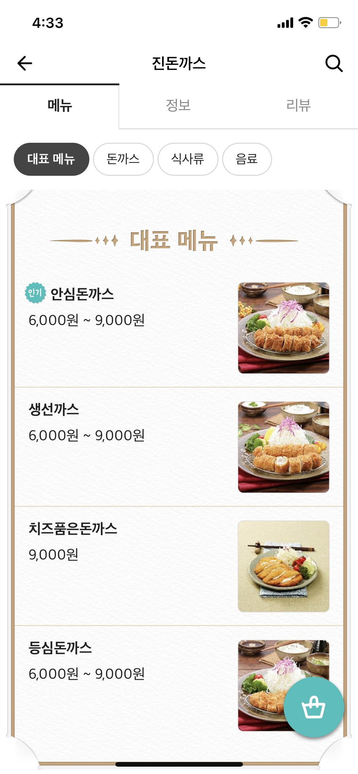 돈까스 시작가격이 6천원이고, 9천원짜리로 하면 저기에 돈까스가 한 팩 더 추가로 온다.