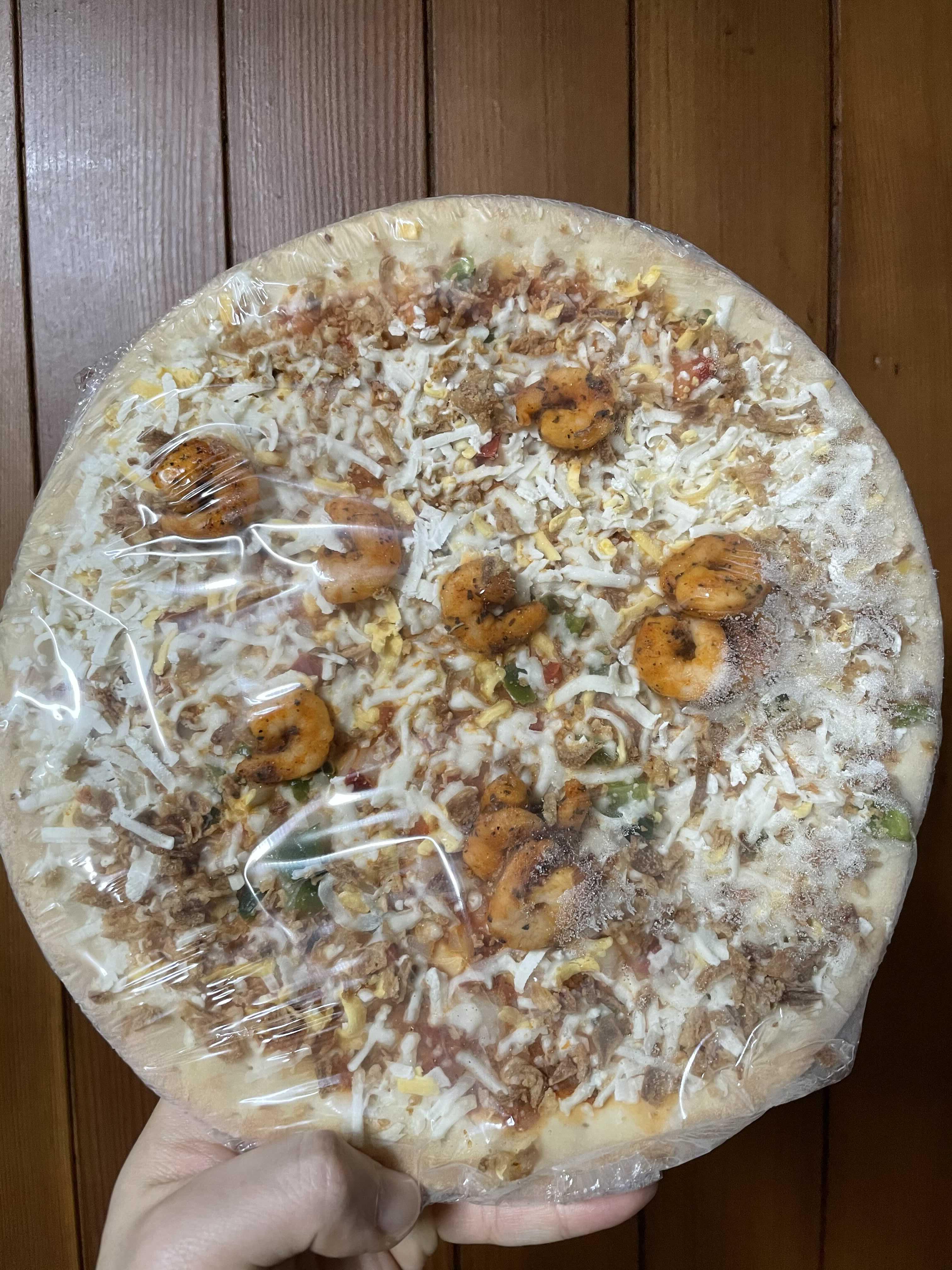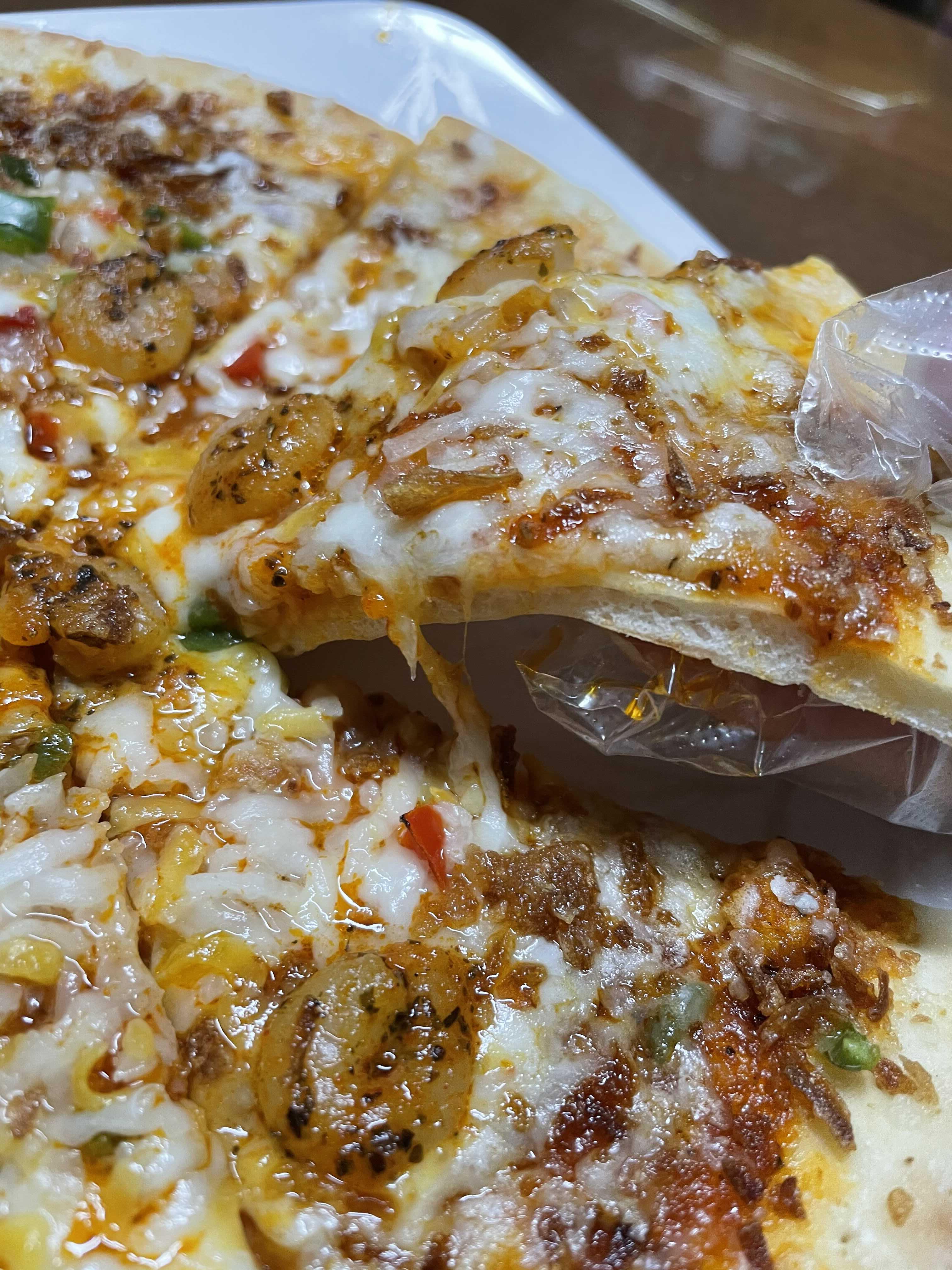하지만 새우도 많이(냉동피자 치고) 있는 편이고, 치즈도 고르게 많이 올라가있었다.