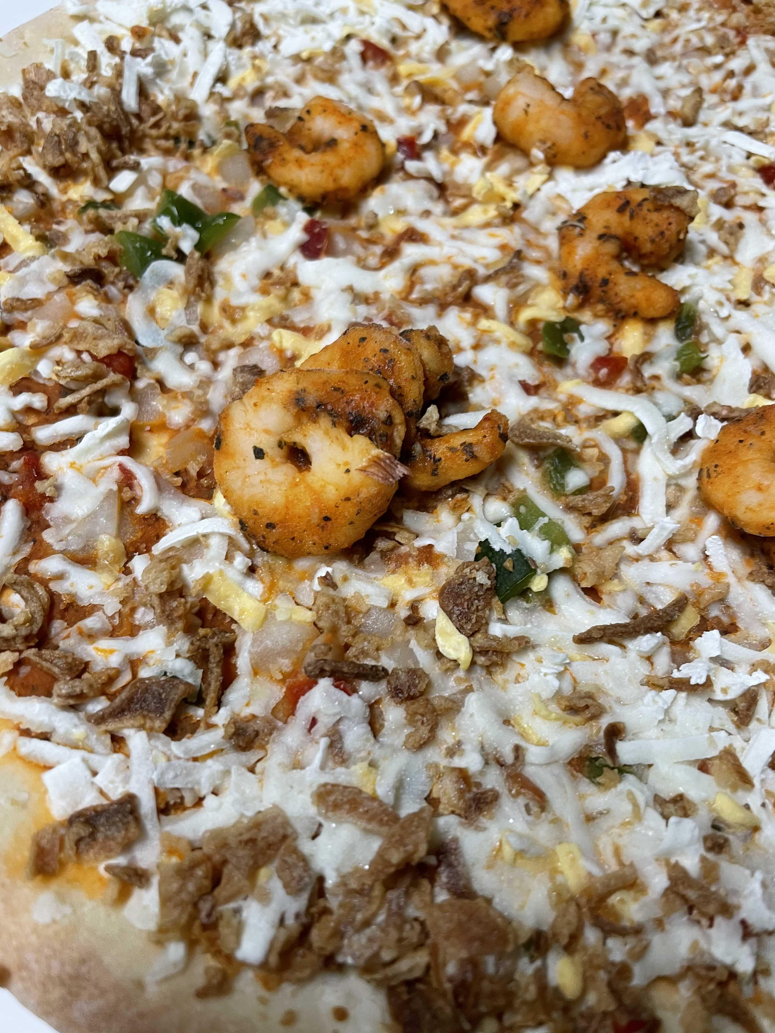 조리를 마친 고메 바르셀로나 칠리감바스 피자는 냉동피자라고 생각되지 않을만큼의 퀄리티를 보여주었다.