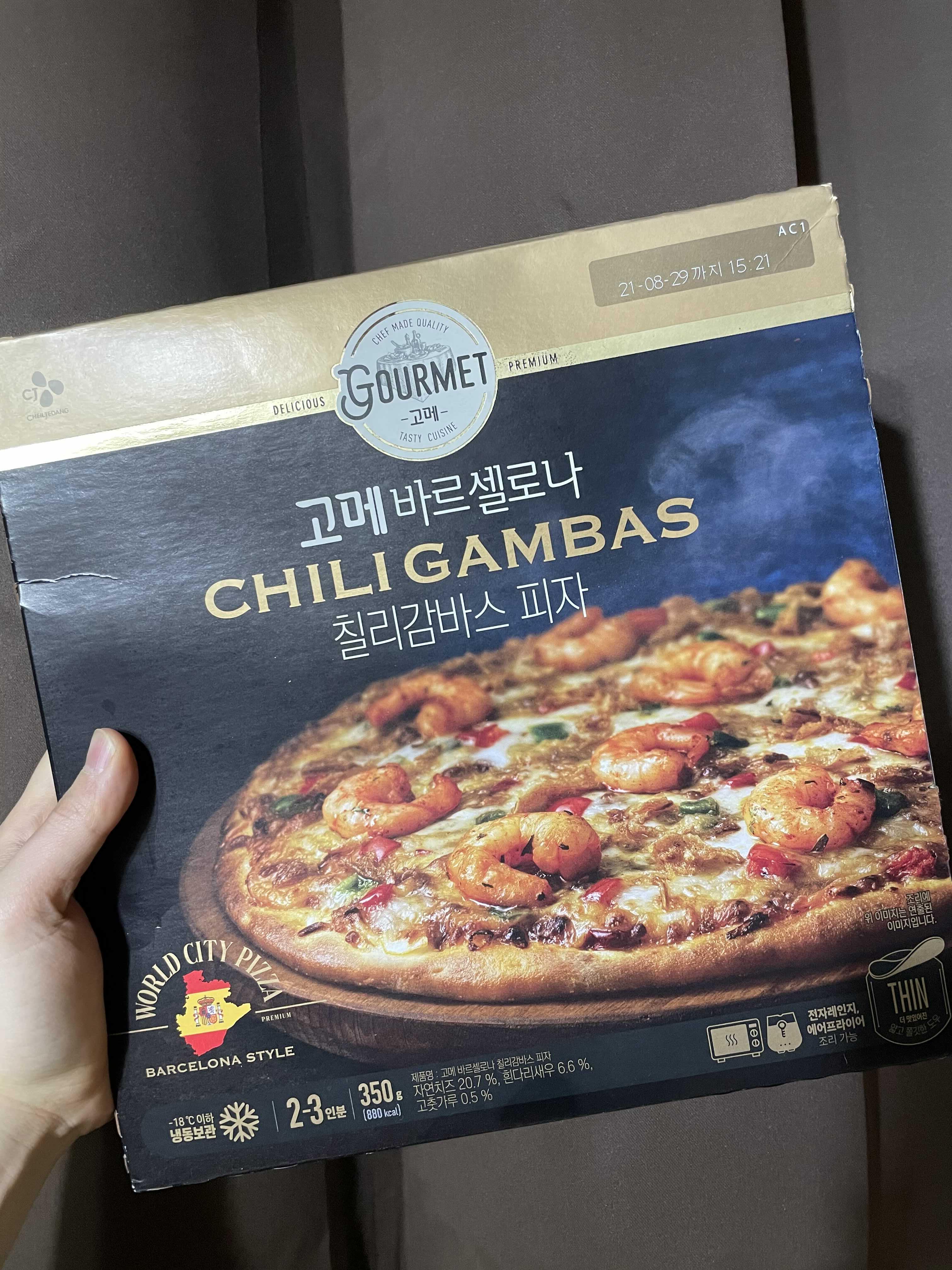고메 바르셀로나 칠리감바스 피자를 조리해보았다
