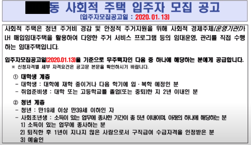 사회적 주택은 정기모집이 아닌 수시모집을 하므로 홈페이지를 수시로 확인해야 한다.