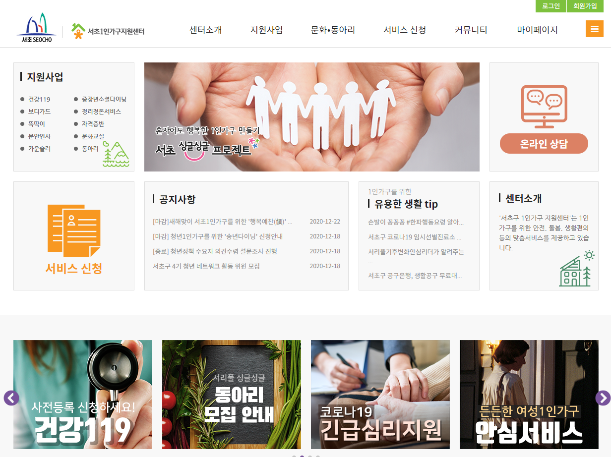 건강가정지원센터 홈페이지에서 '1인가구'를 검색하면 관련 프로그램만 400개가 넘게 나온다고 한다.