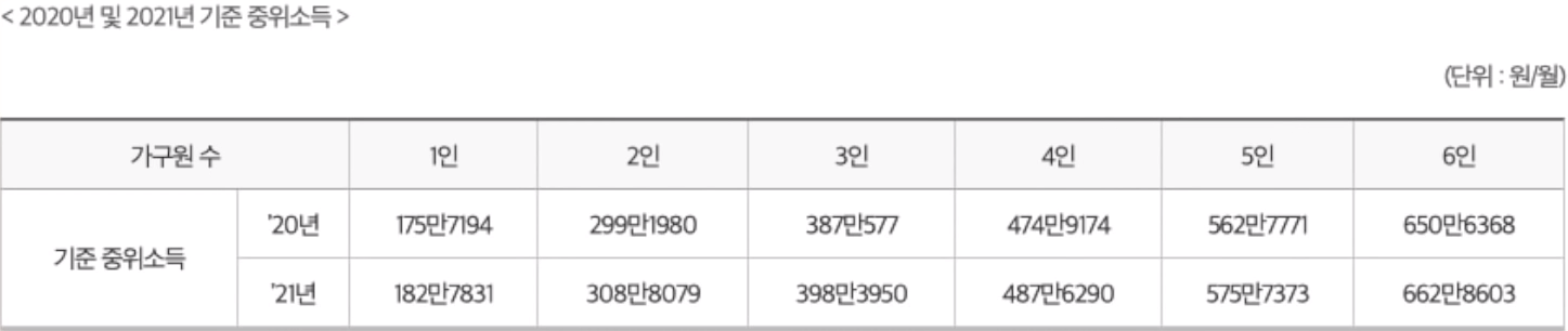 기초생활수급자 자격도 이 기준중위소득을 기준으로 나눈다.