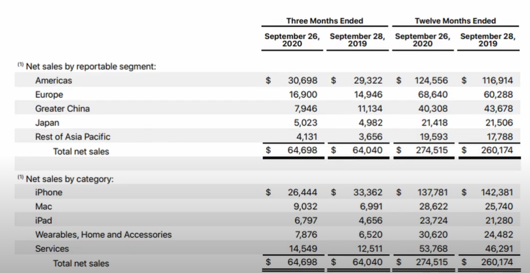 카테고리별 판매량을 살펴보면 애플이라는 회사가 나아가는 방향 또한 짐작해볼 수 있는데, 도표의 자료에 따르면 아이폰 매출은 떨어지지만 그 이외 분야의 매출이 상승하는 것을 볼 수 있으며 서비스 분야의 매출이 특히 증가하는 것도 눈에 띄는 변화다.