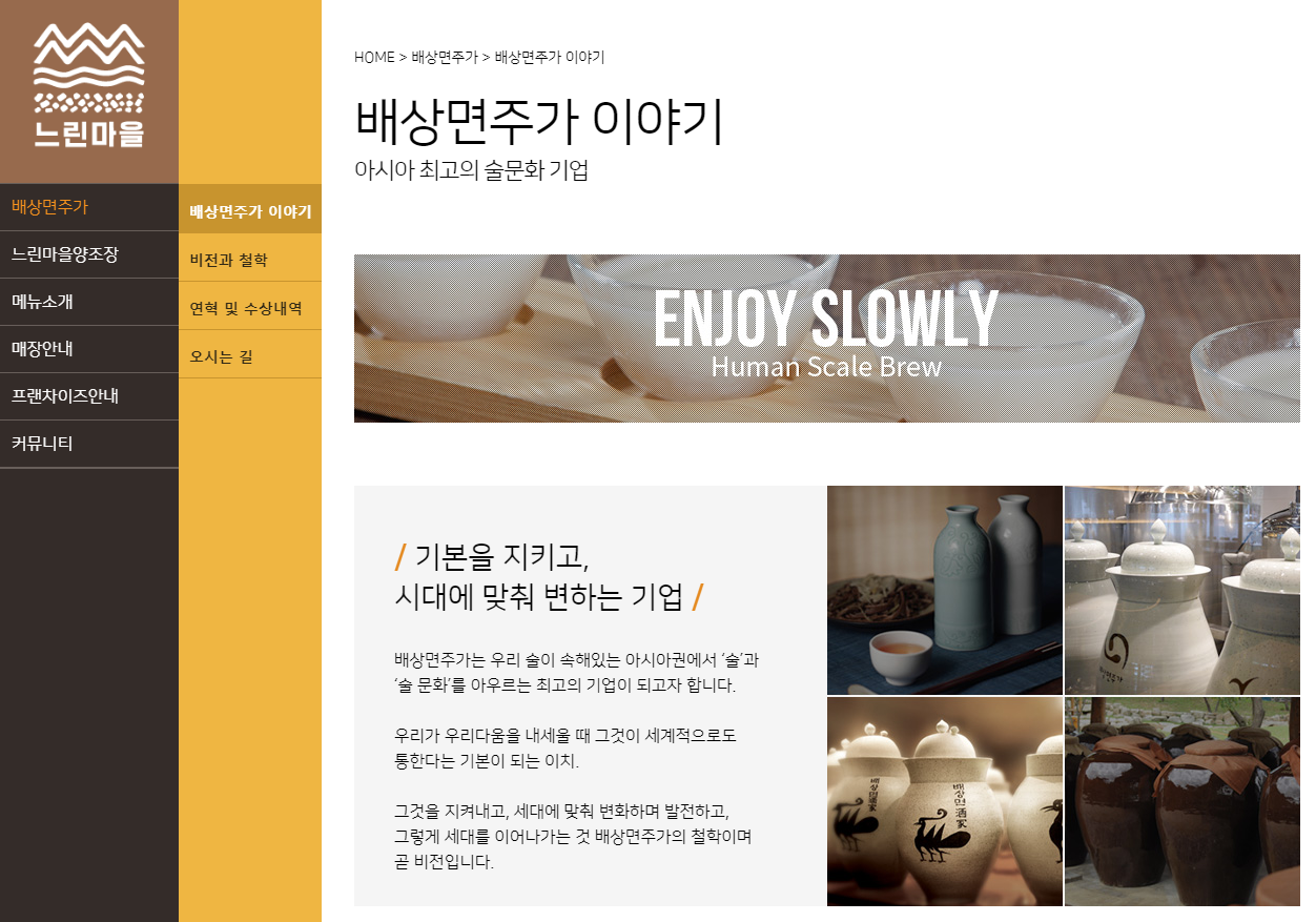 영광의 1위는 배상면주가의 '느린마을 막걸리'이다.
