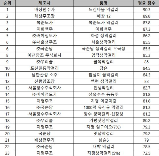 그러다보니 재미삼아 보게 된 막걸리 순위가 있었다.