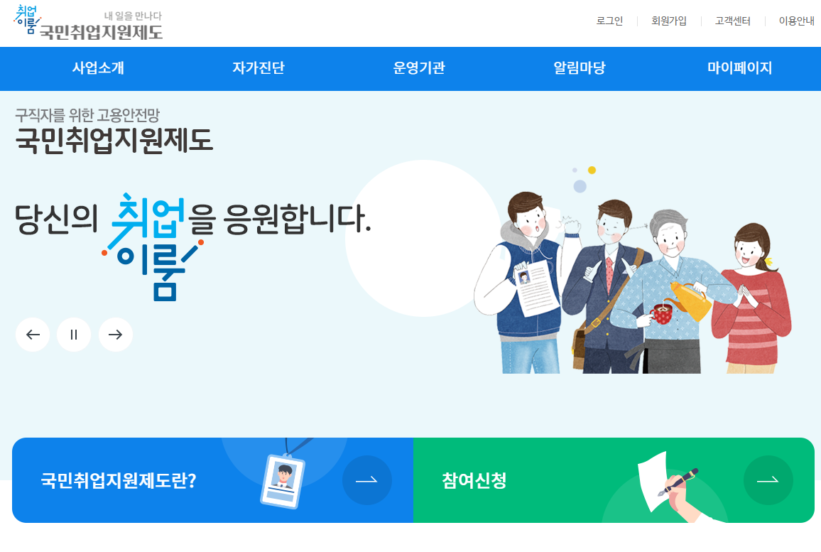 국민취업지원센터에 들어가면 참여신청도 쉽게 가능하다.