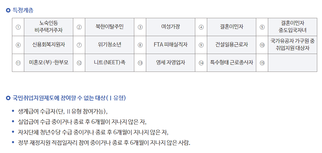 또한 아래의 표는 2유형의 특정계층에 대해 설명해놓은 표이니 자신이 해당하는 분야가 있는지 확인 후에 신청을 하기 바란다.
