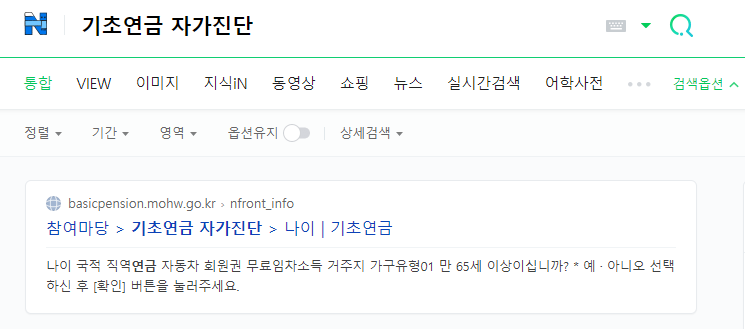 인터넷창을 하나 켠 후에 검색창에 <기초연금 자가진단>을 검색한다.