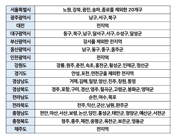 대전과 인천 제주도는 전지역 지자체에서 지원한다고 한다.