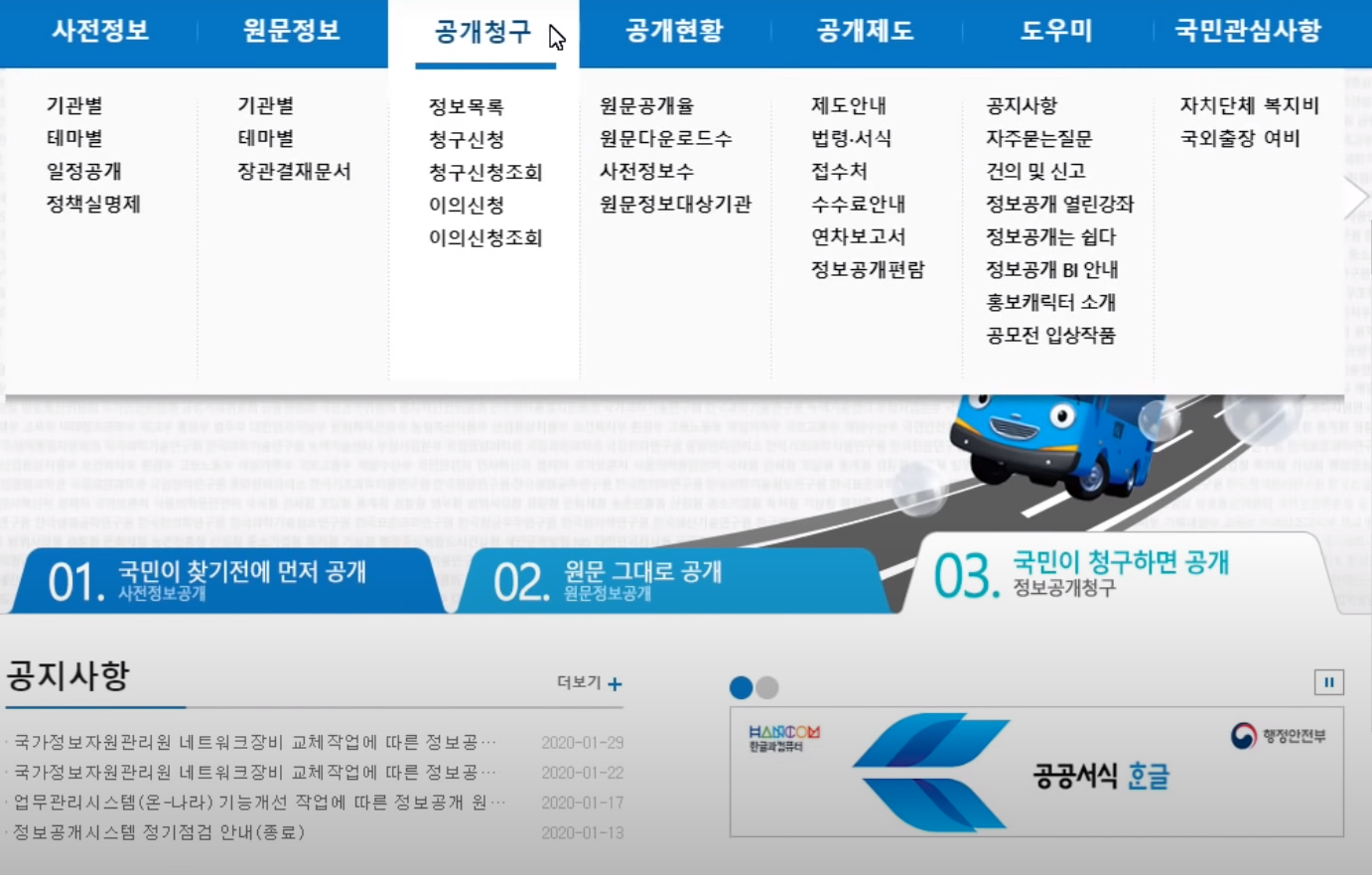 정보공개포털 사이트를 잘 찾기 어려운 사람들을 위해서 아래에 정보공개포털의 링크를 남기도록 하겠다.