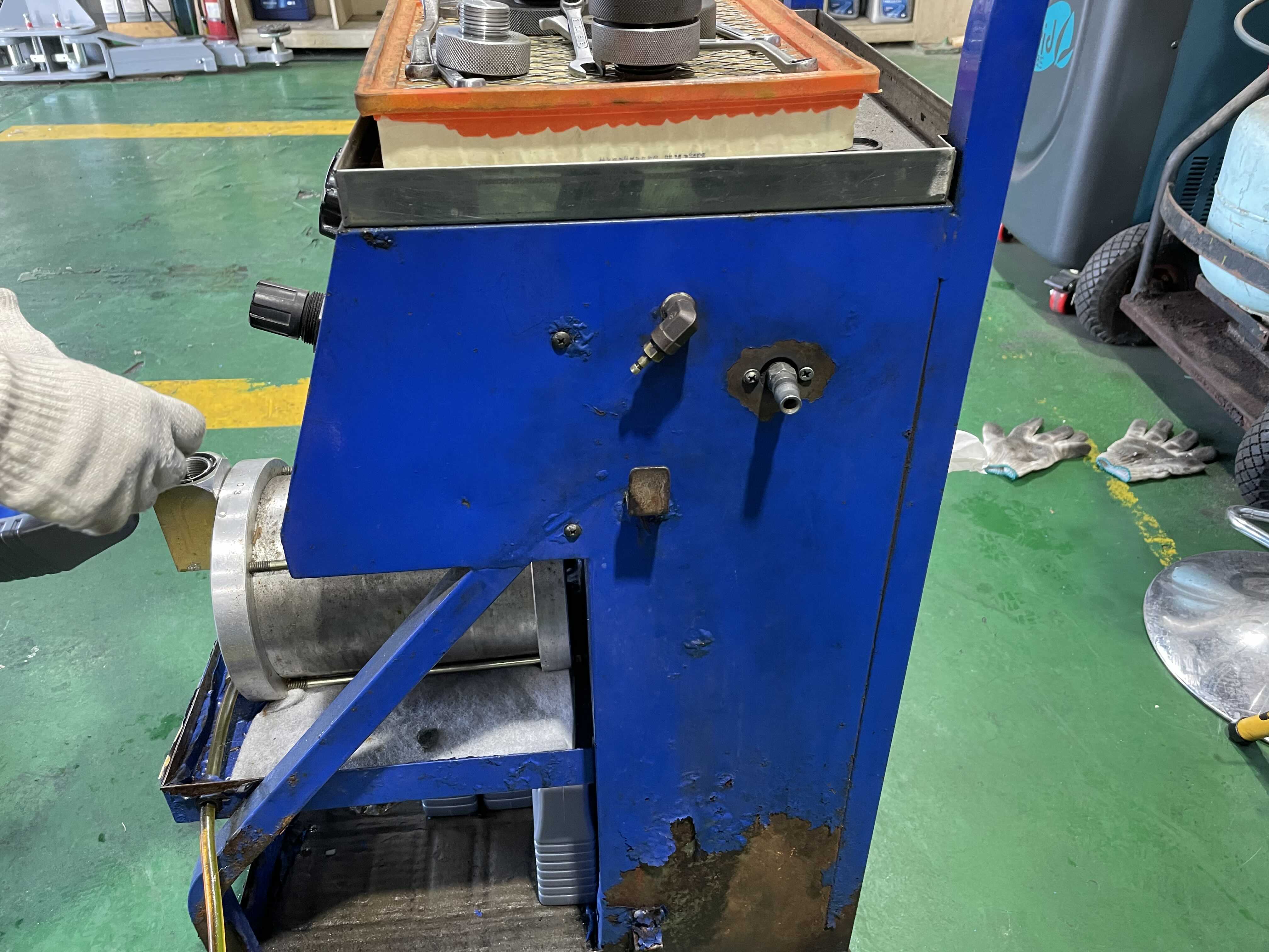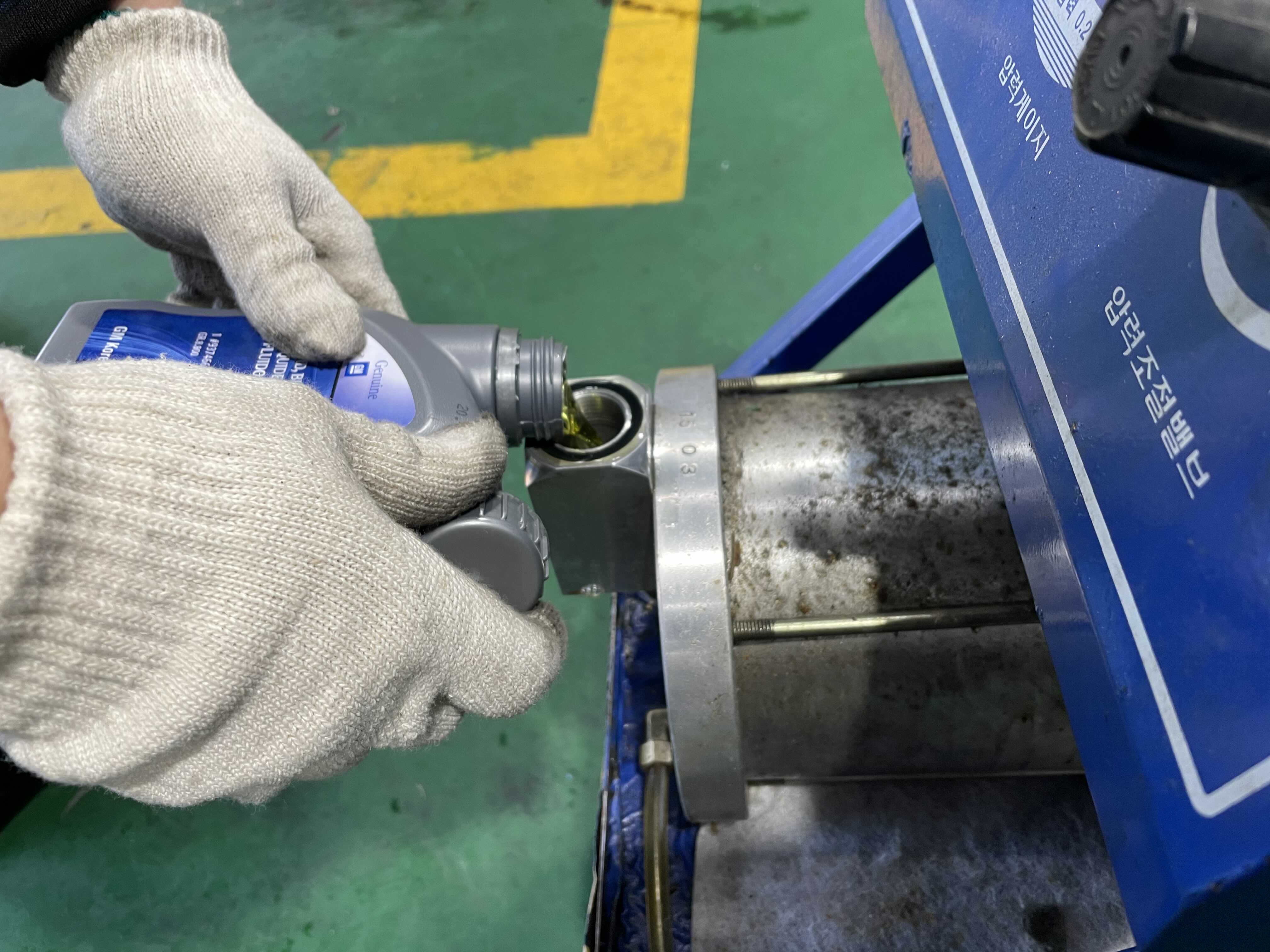 이 기계가 바로 브레이크오일을 넣을 때 사용하는 펌프(?)기계이다.