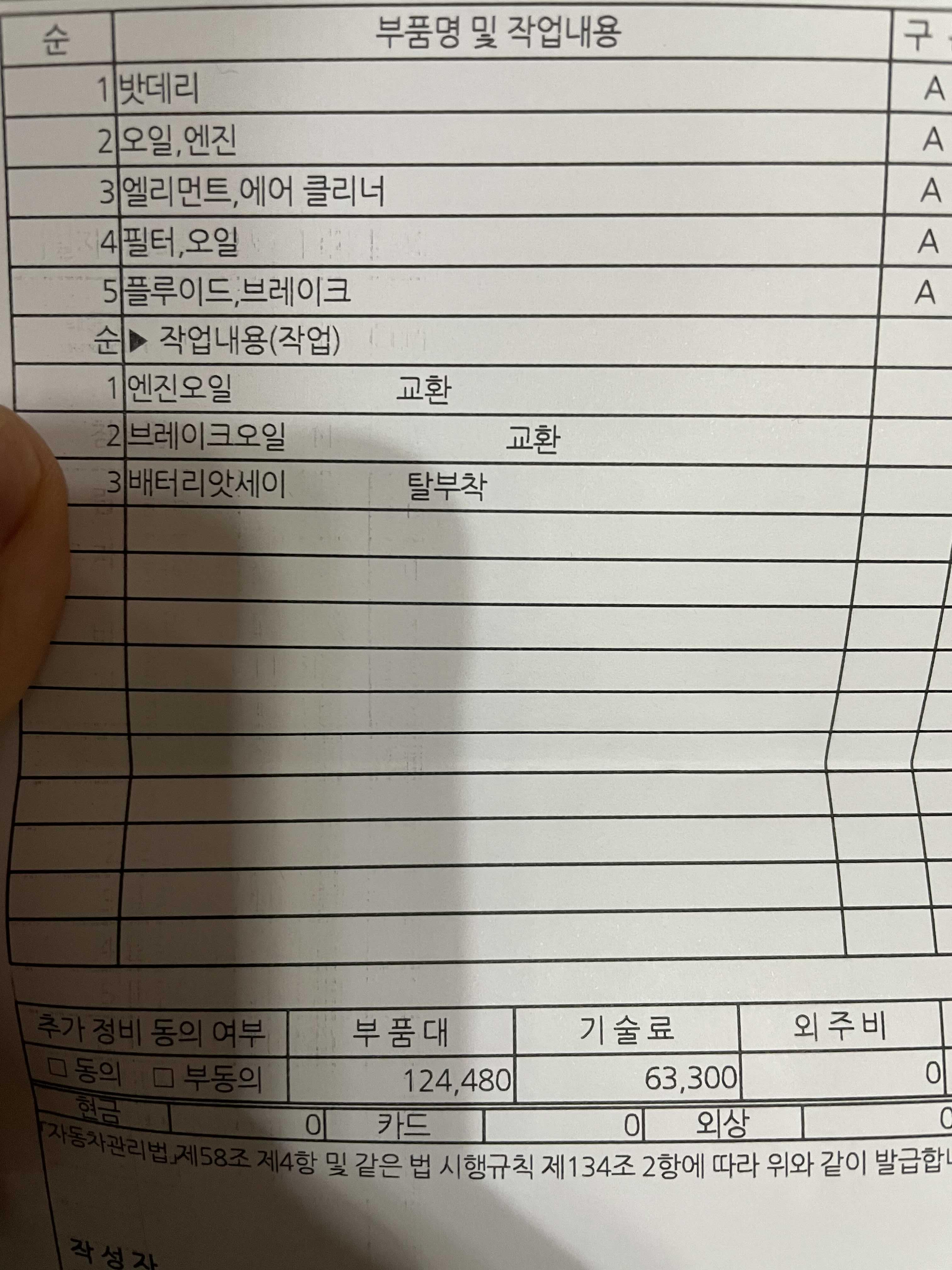 브레이크오일의 교체도 그리 부담스럽지 않은 가격이어서 함께 하기로 했다.