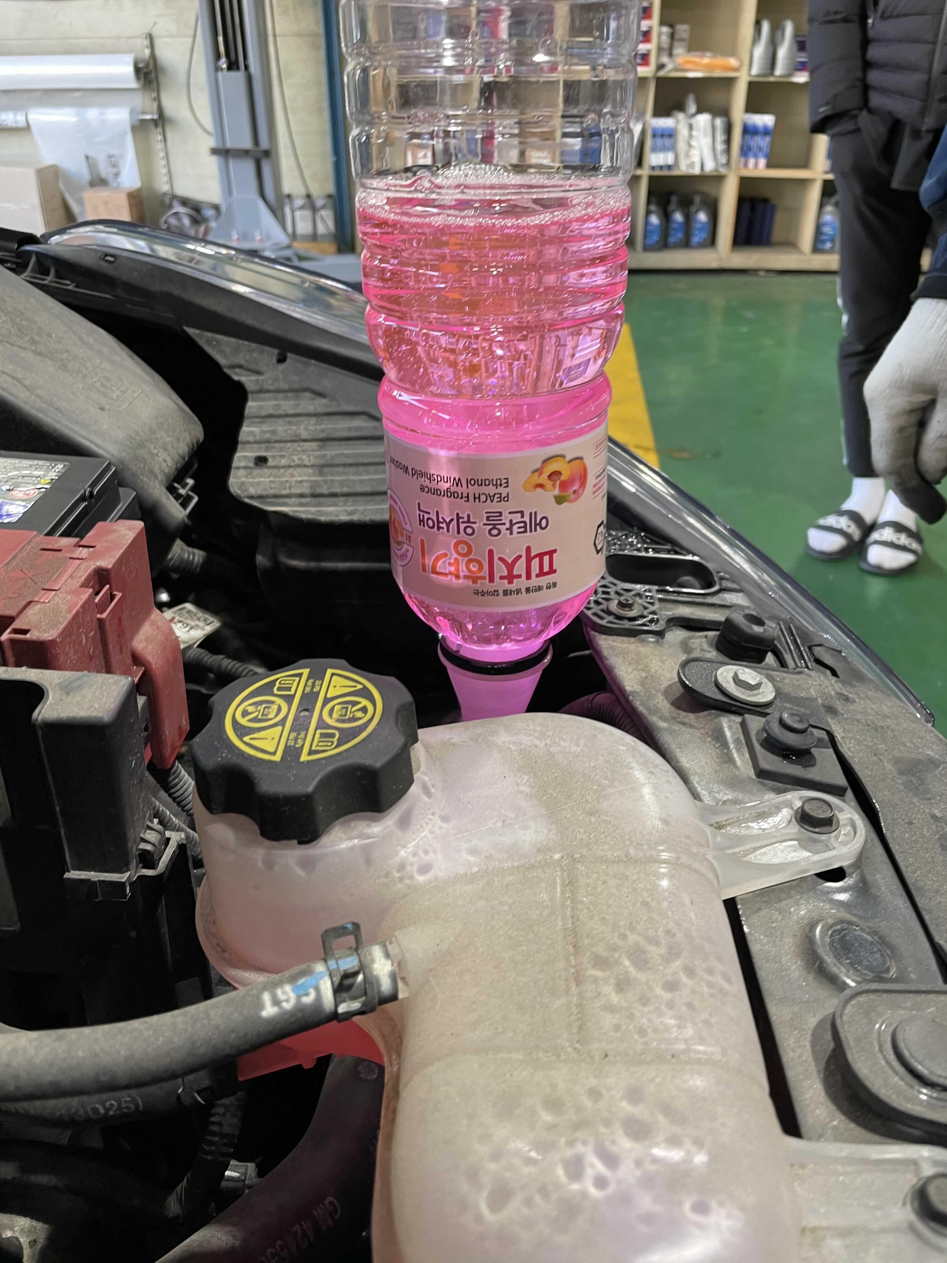 그동안 냄새가 이상했던 워셔액 대신에 복숭아향이 나는 기분좋은 워셔액으로 갈아주셨다.