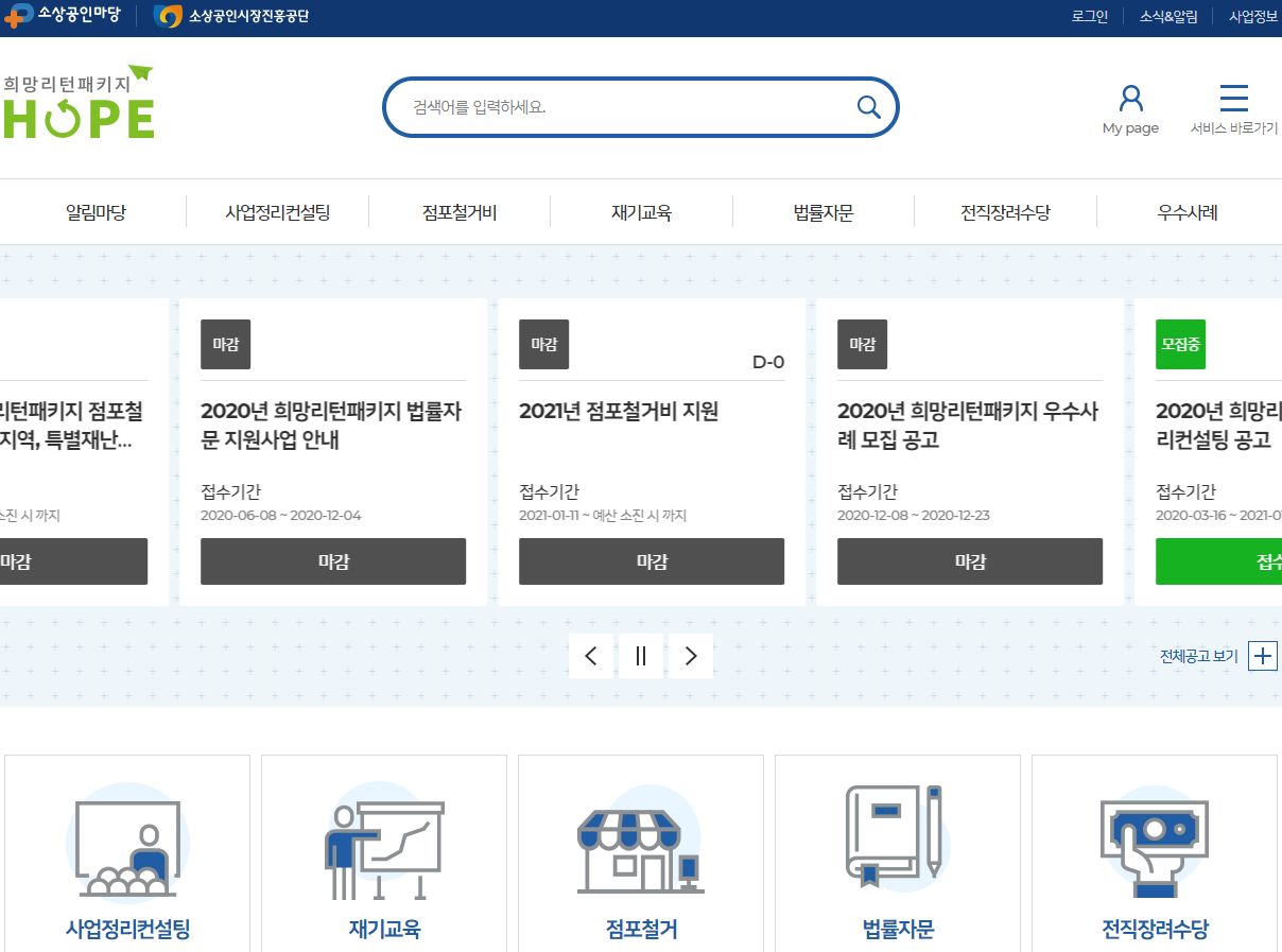 폐업예정이거나 이미 폐업한 소상공인을 위한 희망리턴패키지를 알아보았다.