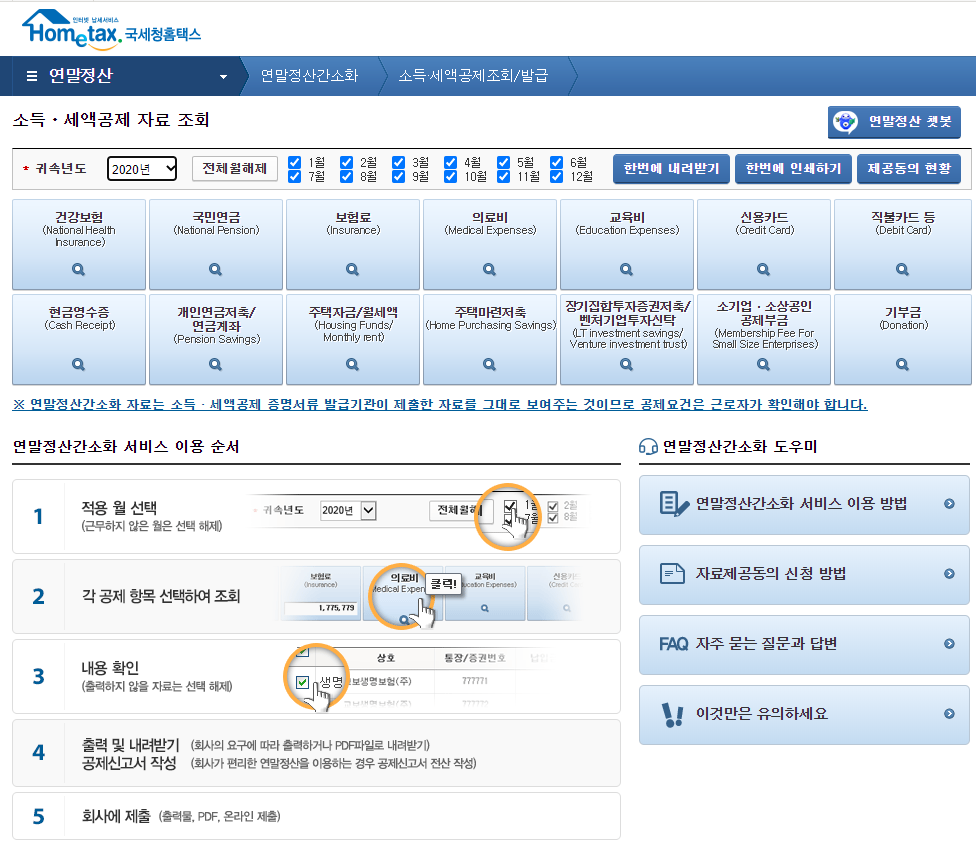 3. 연말정산 간소화 자료 조회(근무기간에 해당하는 월 체크)