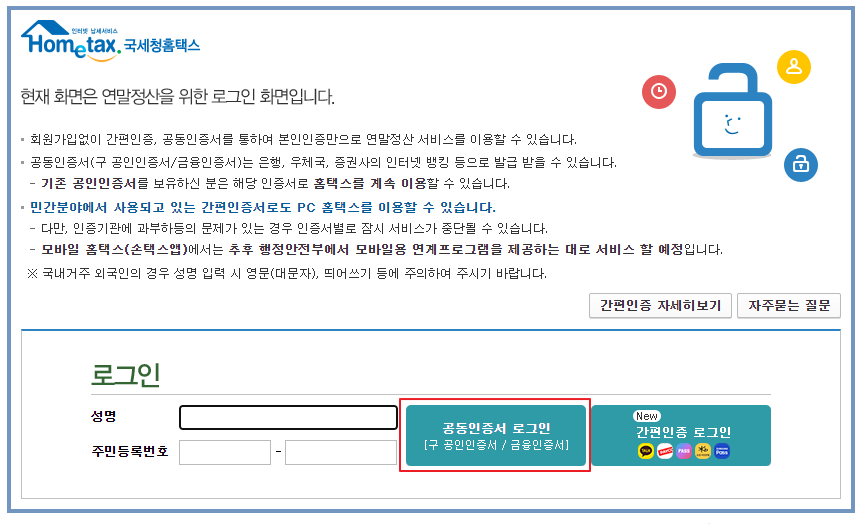 1. 공동인증서 로그인(은행이나 우체국에서 발급)