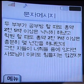 그리고는 한 동영상을 보여주는데. 그 동영상 속의 아이는 물맥(헌금)좀 잘하라고 한다.