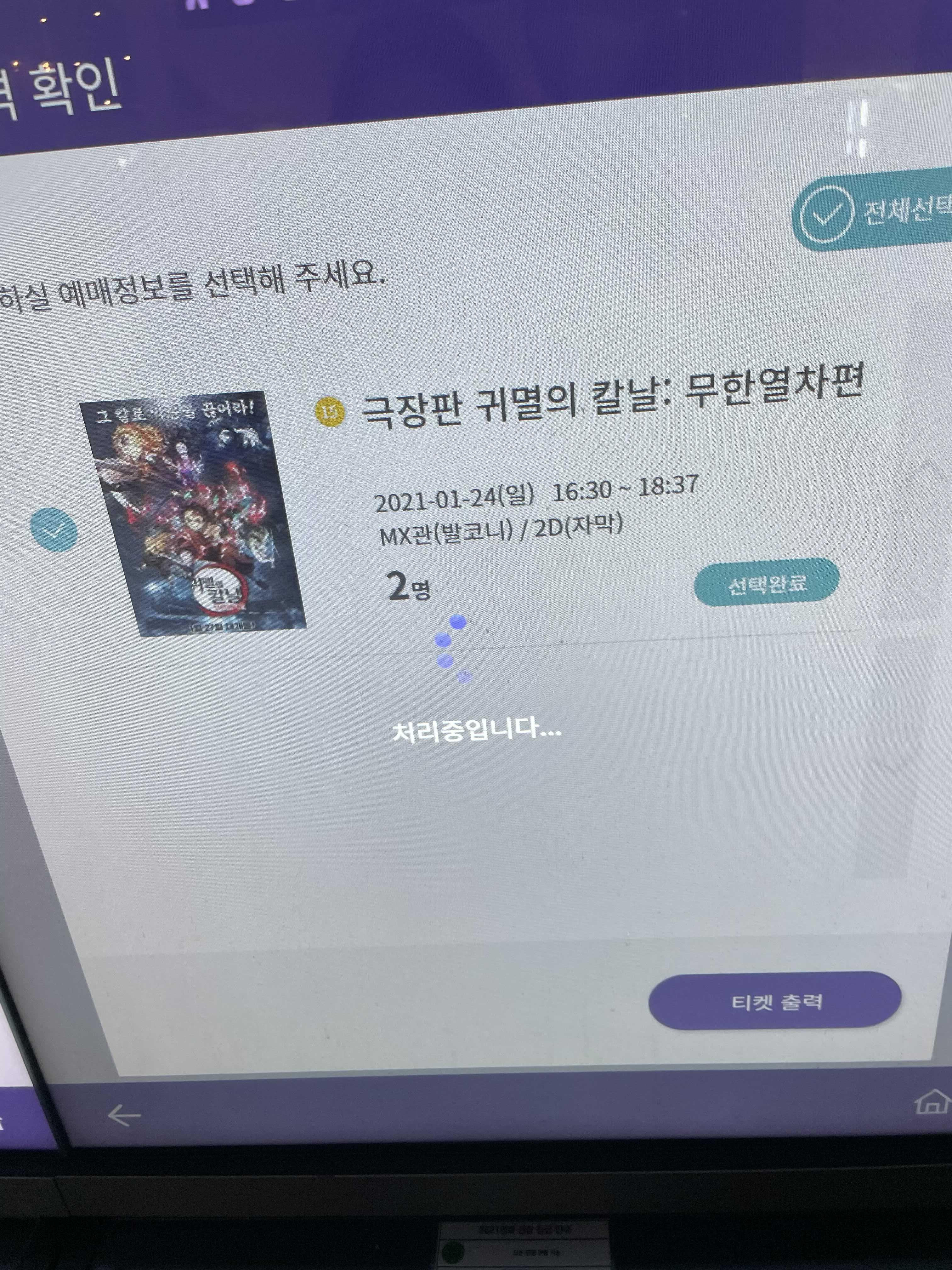 귀멸의 칼날 무한열차를 보기 위해서 송도 메가박스에서 티켓을 뽑고 사진도 찰칵!