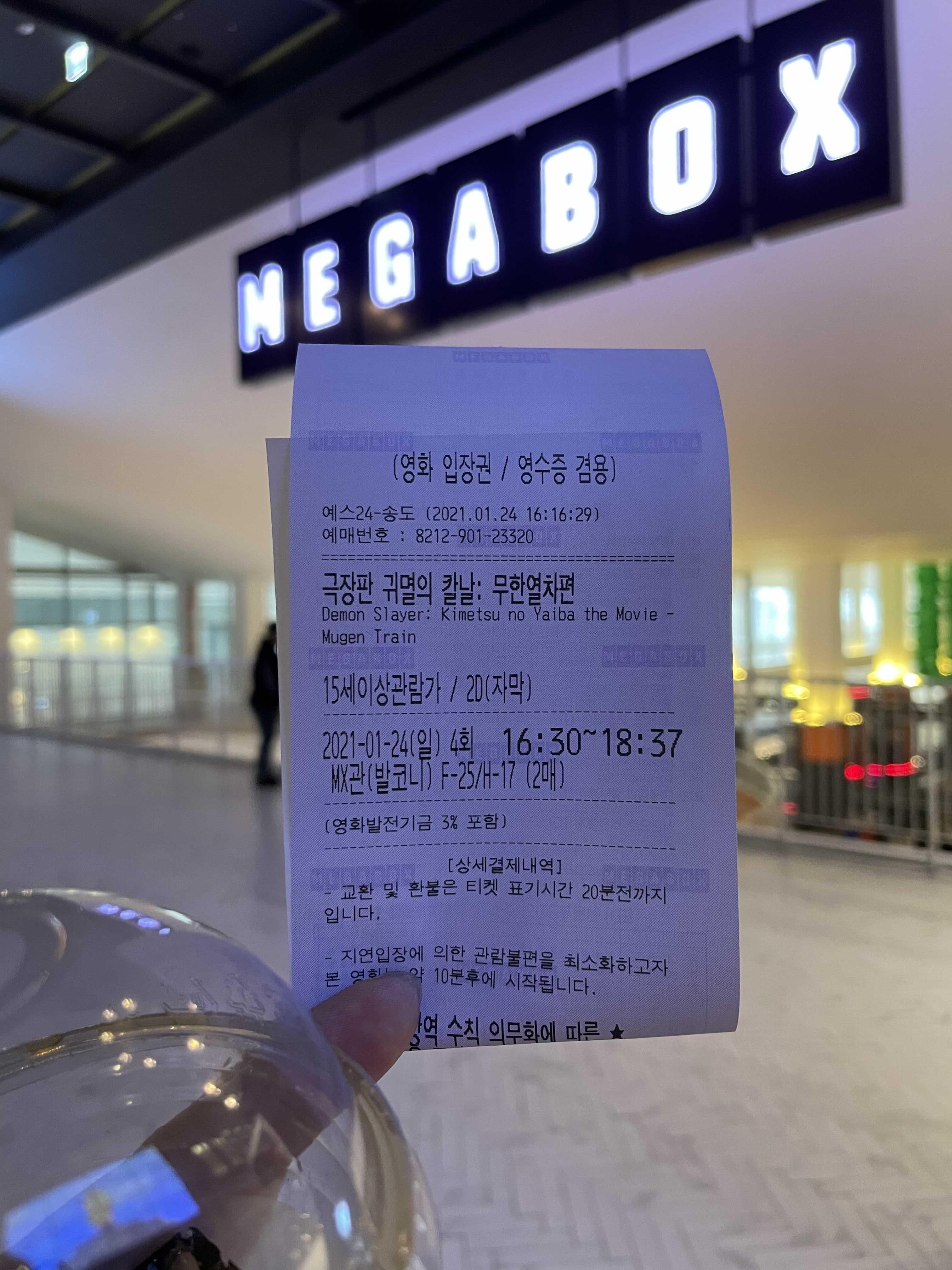 귀멸의 칼날 무한열차를 보기 위해서 송도 메가박스에서 티켓을 뽑고 사진도 찰칵!