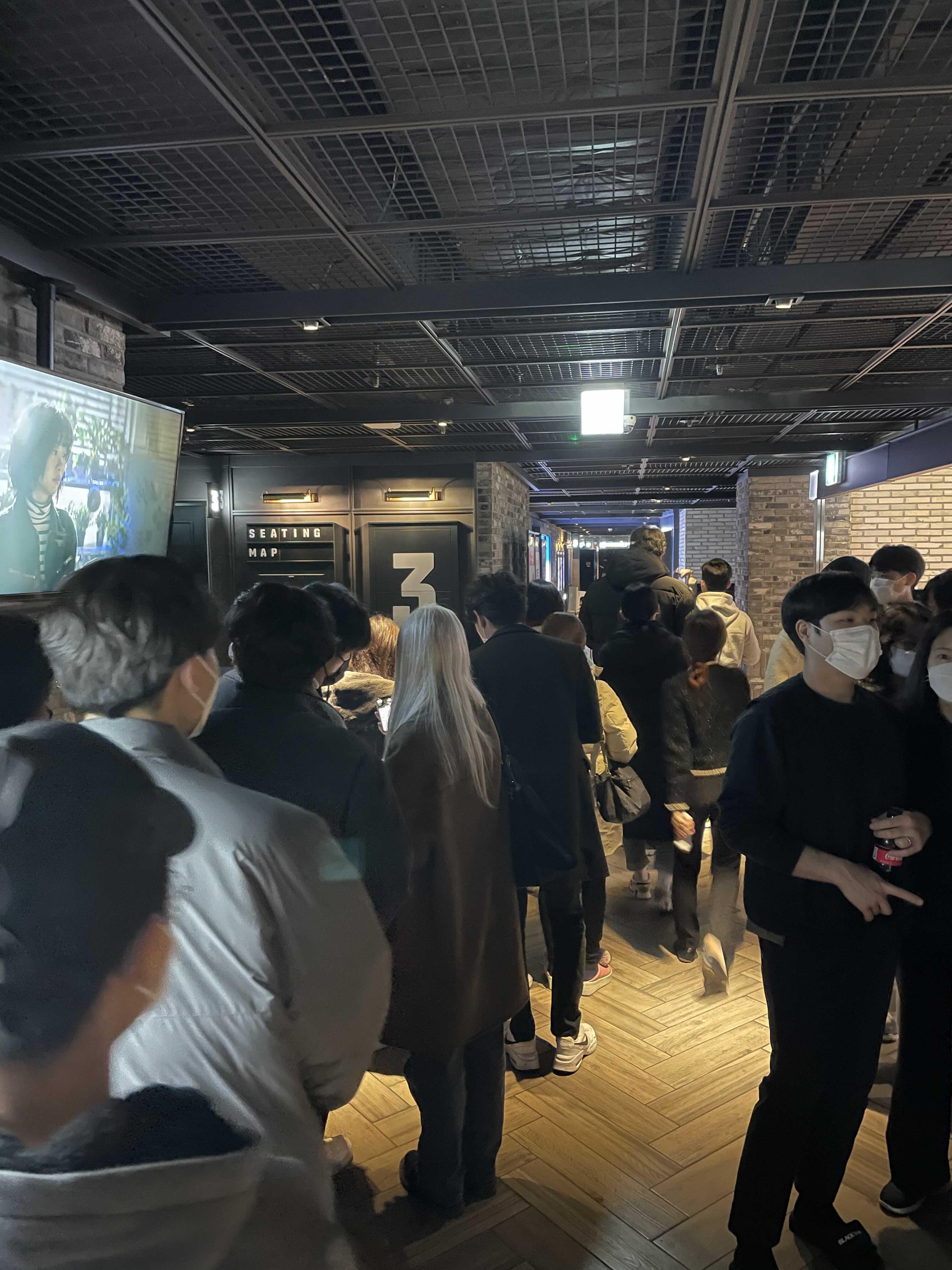 우리가 표를 예매하고 시사회를 보러 송도 메가박스에 가니까, 시국임에도 불구하고 이미 귀멸의 칼날 무한열차 시사회에 참석하기 위해서 많은 사람들이 도착해있었다.
